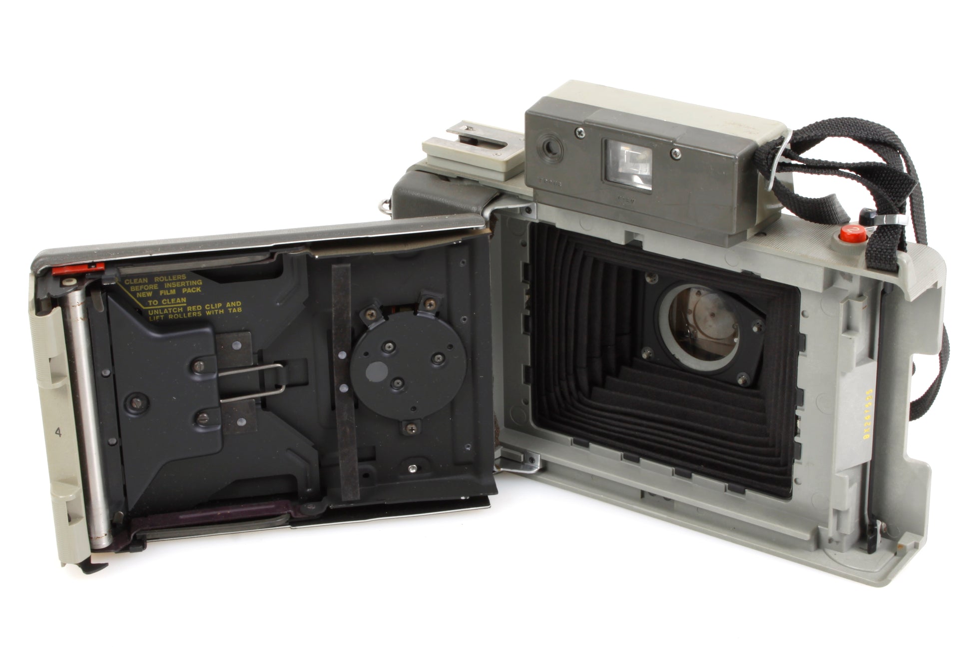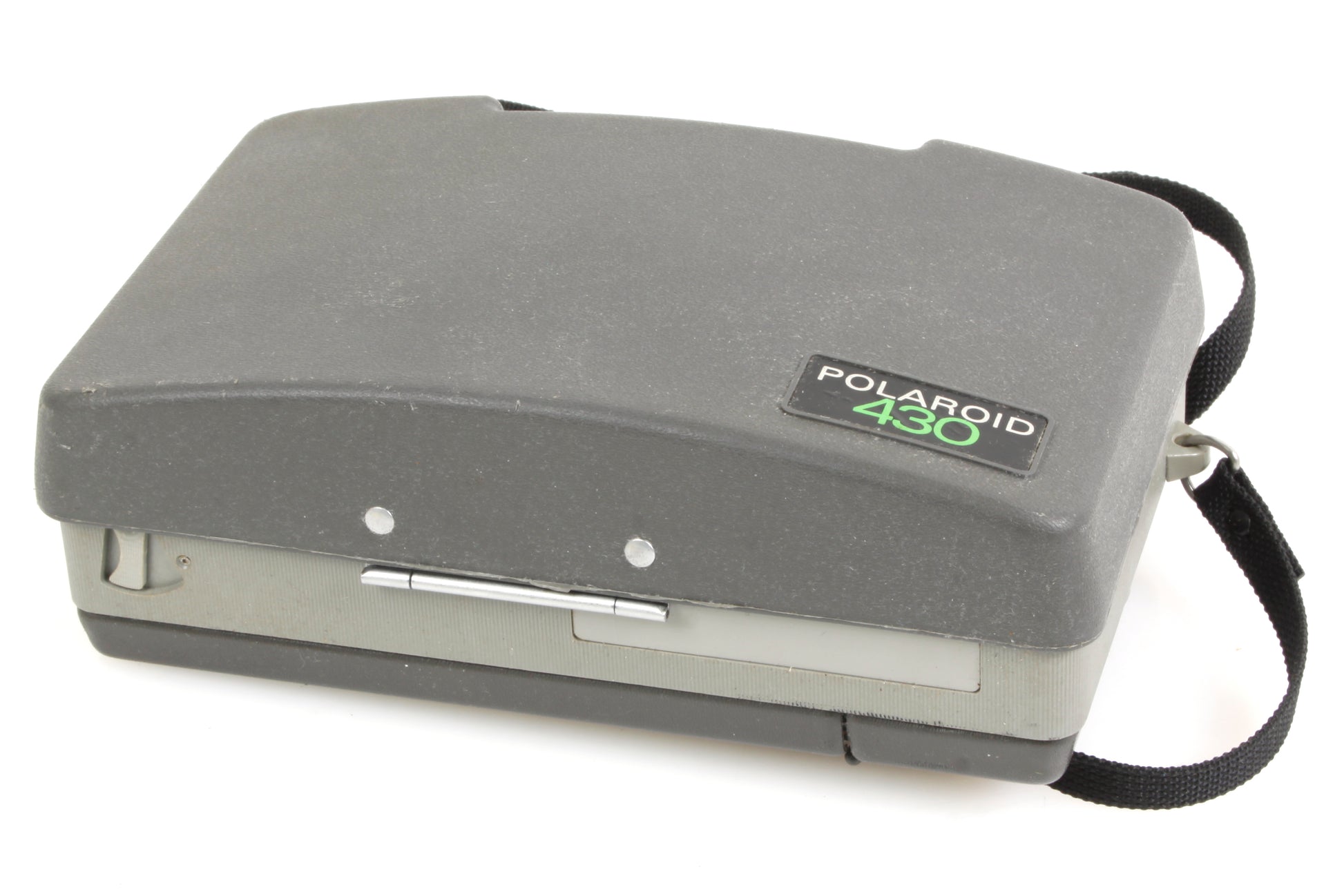 Polaroid 430 Automatic Land Camera. It looks to be in working order, the shutter is firing fine, although it has not been tested with film or for accuracy. Cosmetically it is in good vintage condition. No visible tears to the bellows. Significant haze to the viewfinder. There looks to be some dust present to the lens but no haze, fungus or scratches.