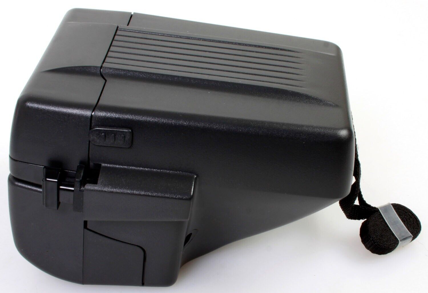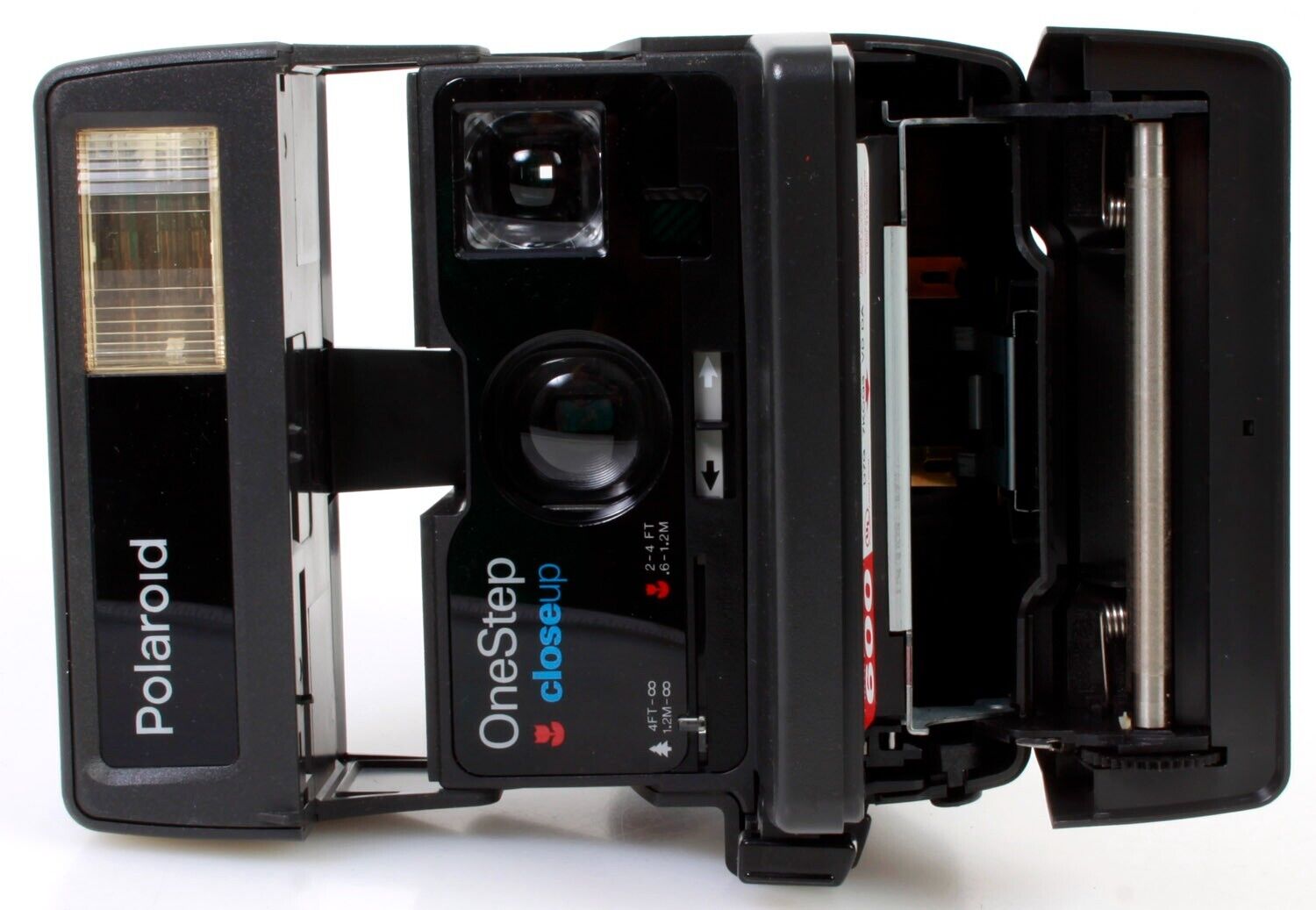 Good condition. This Polaroid Close Up Camera has an automatic flash, focus range from 2 feet to infinity, close up switch that moves lens into place for shots between 2-4 feet, lighten/darken control, and folds into a compact size. Comes with original box, B&W 600 instant film with 8 exposures and color 600 film with 8 exposures.