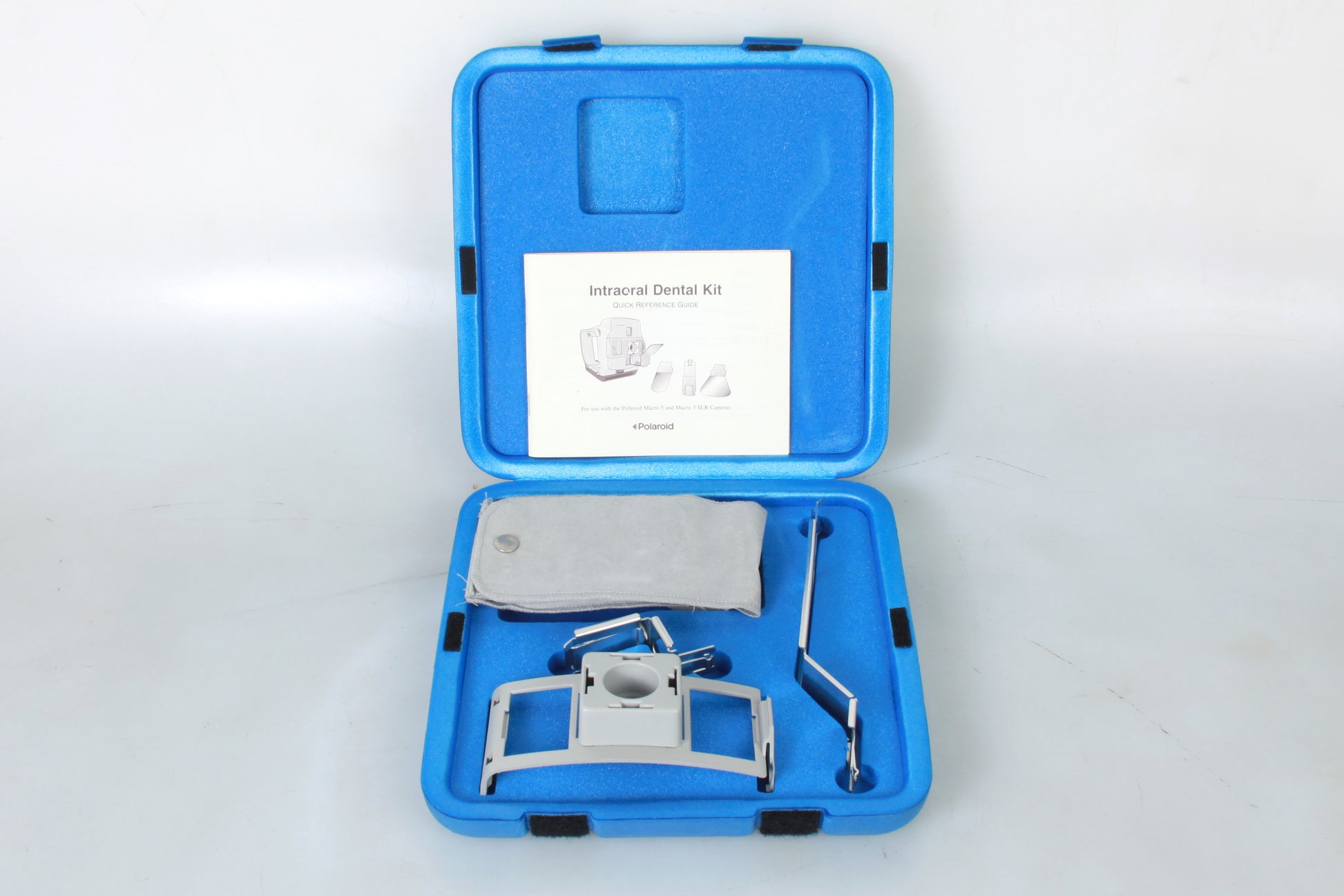 POLAROID INTRAORAL DENTAL KIT FOR USE WITH THE MACRO 5 AND MACRO 3 SLR CAMERAS. NEW OLD STOCK. COMES IN ORIGINAL CASE WITH MANUAL. SOME MARKS TO THE EXTERIOR OF THE CASE. MANUAL IS IN ENGLISH, GERMAN, SPANISH, FRENCH, ITALIAN, AND JAPANESE LANGUAGES.