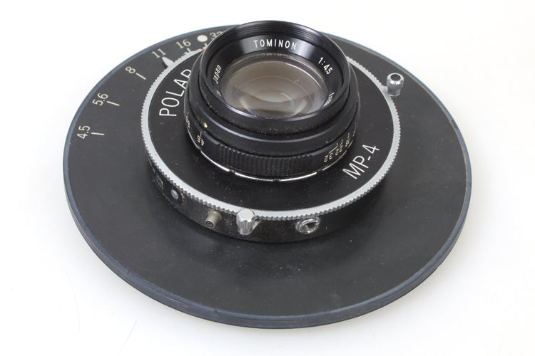 POLAROID MP-4 TOMINON 1:4.5 F=135MM LENS. THERE IS SOME HAZE AND FUNGUS PRESENT INSIDE THE LENS BUT NO DUST OR SCRATCHES. SHUTTER IS WORKING SMOOTHLY. SOME LIGHT MARKS TO THE BODY BUT OVERALL IN VERY GOOD COSMETIC CONDITION.