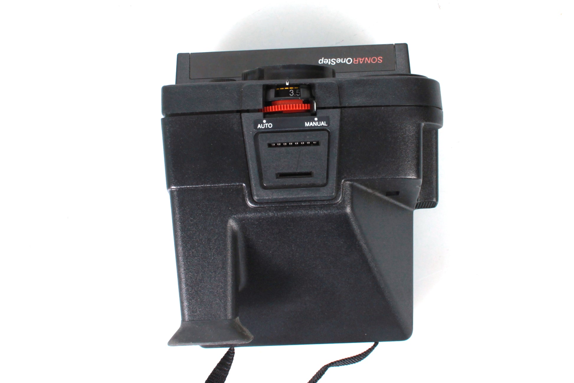 POLAROID SONAR ONE STEP PRONTO LAND CAMERA. IN LIKE NEW CONDITION. LOOKS LIKE IT HASNT BEEN USED. COMES WITH STRAP, ORIGINAL MANUAL AND COLOR SX-70 FILM. SOME LIGHT MARKS AND YELLOWING TO THE MANUAL BUT THE CONTENTS ARE STILL CLEAN AND READABLE. FILM IS NEW IN BOX, AND IN DATE.