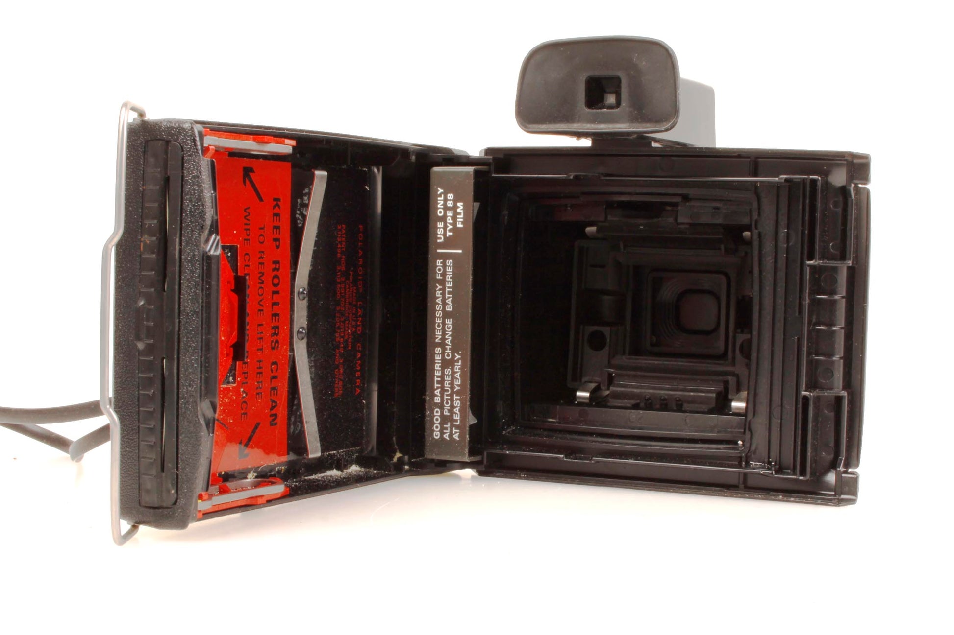 Shutter fires. Lens is quite cloudy. Inside is mostly clean, some signs of past erosion. In overall good condition. Comes in box with manuals.