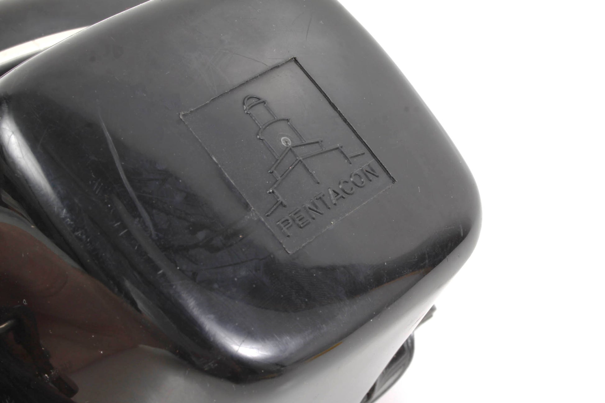 6 X 4.5 X 4.5 inch case. Lens area and the top piece is hard plastic compared to the rest of the leather body. Inside is a nice red felt in clean condition, slight old smell.