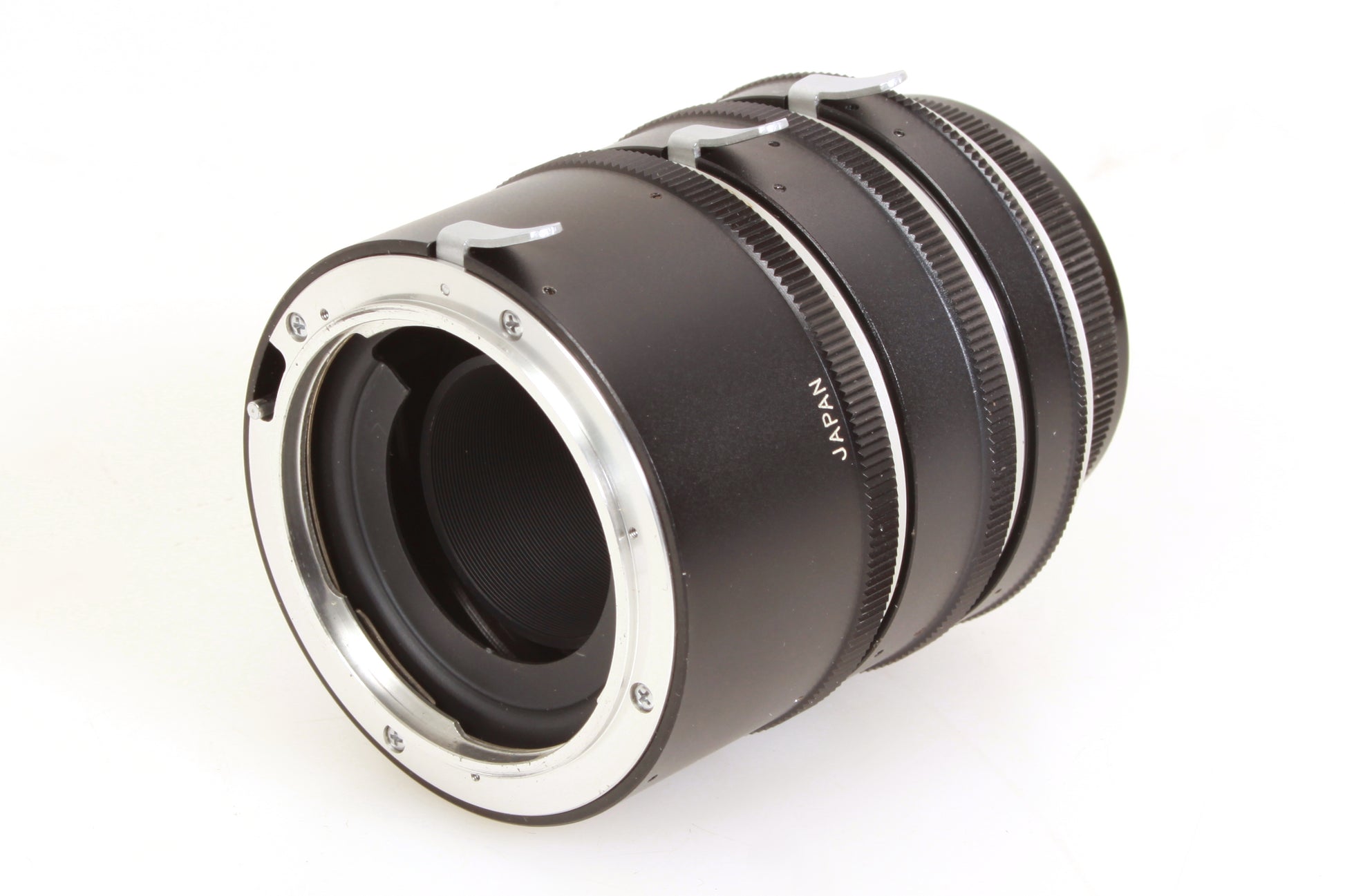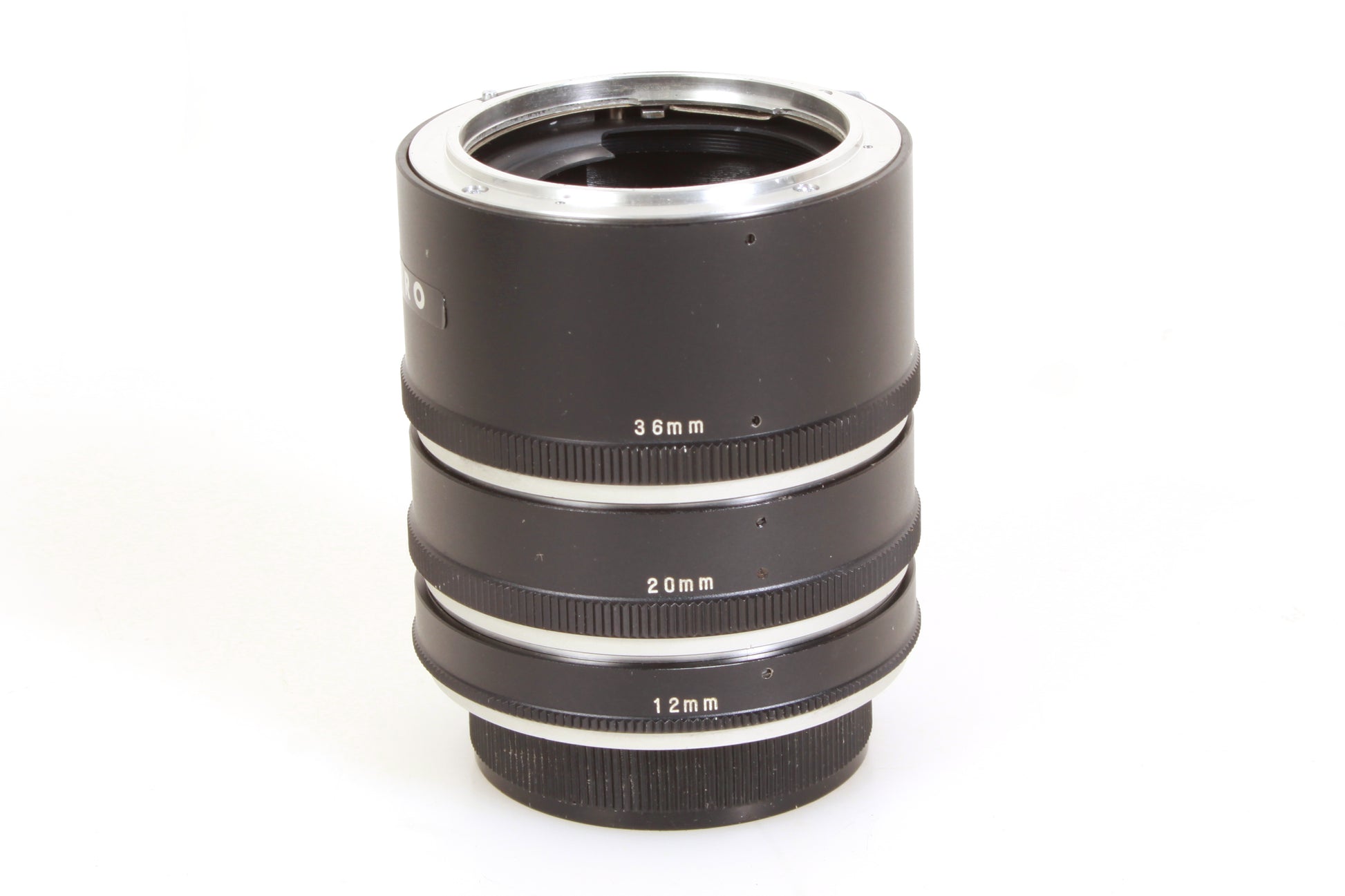 Promatic Automatic Extension Tube Set 12mm, 20mm and 36mm for Konica Autoreflex T. New old stock. Comes with original box and manual. Some damage to the box.