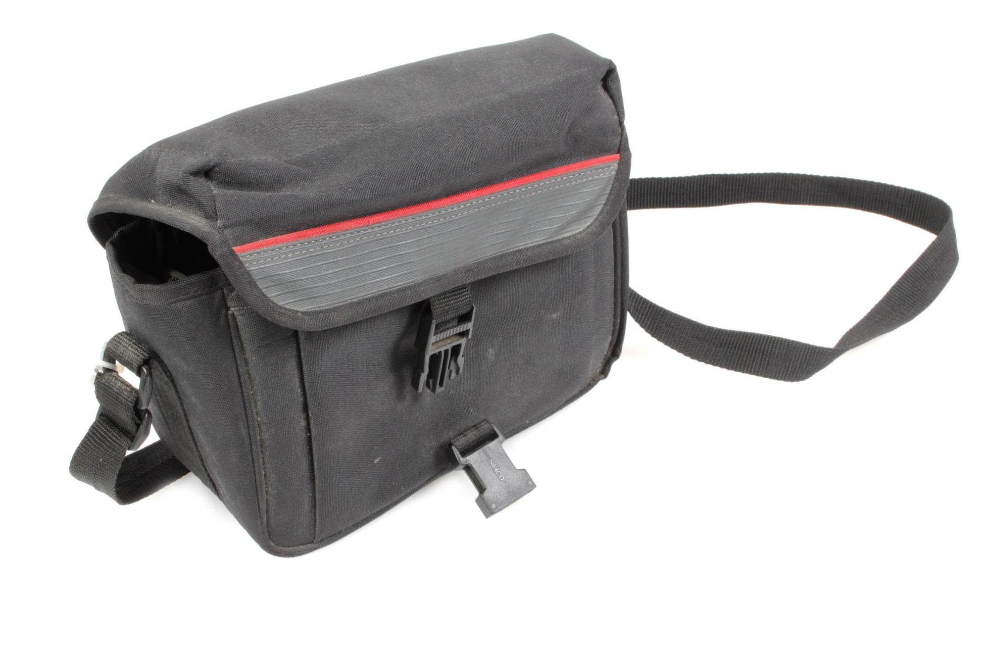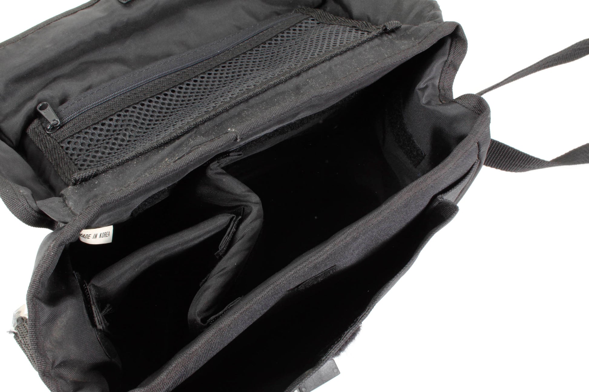 10 X 4 X 7 inch bag size. Bag has one main pocket with two Velcro dividers. Inside of bag is clean, outside could use a wash.