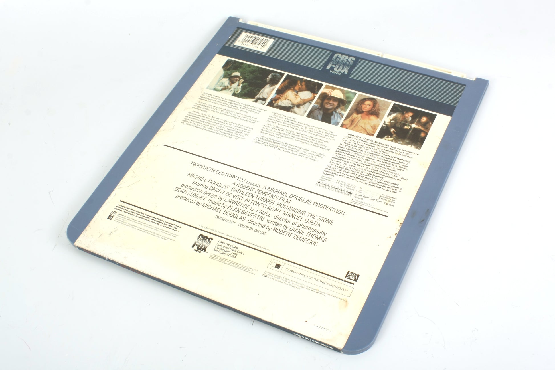 SET OF TWO MOVIES ON CED VIDEODISC. ROMANCING THE STONE IS ON ONE DISC AND FOR YOUR EYES ONLY IS ON TWO DISCS. THE DISCS LOOK TO BE IN GOOD USED CONDITION WITH SOME MINOR MARKS/SCRATCHES. THEY HAVE NOT BEEN TESTED SO THEY ARE BEING SOLD AS IS. THERE IS SOME GENERAL WEAR AND TEAR TO THE CASES.