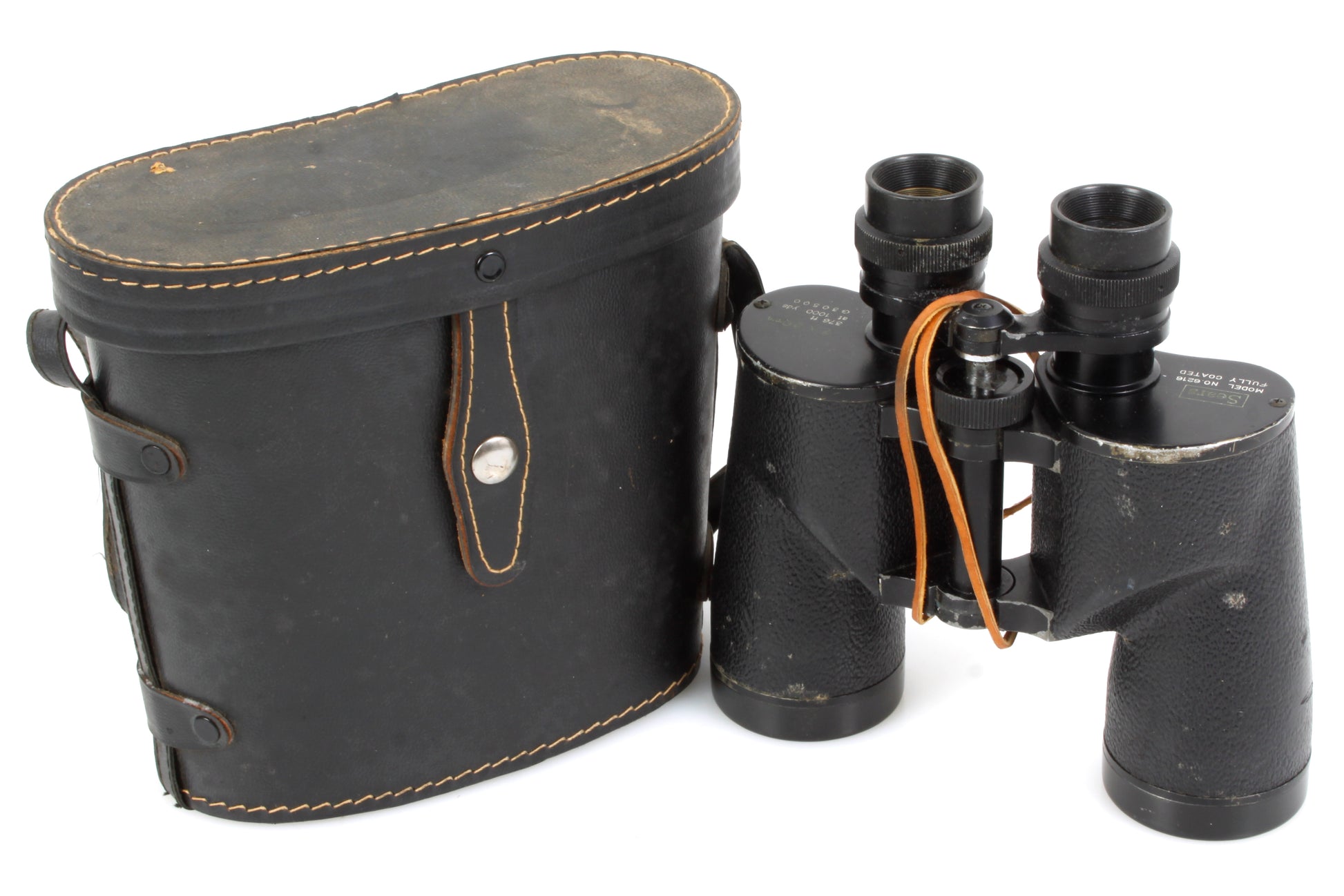 Sears binoculars Model No. 6216 7x50mm 376ft at 1000 yds. There is some dust, haze, fungus and light scratches present to the lenses. They still provide a clear picture when looking through and focusing. The body has some areas of wear and general signs of use. Comes with case which measures approximately 8 3/8 x 7 1/2 x 3 3/4 inches. There are some marks and wear to the case. Sold as is.