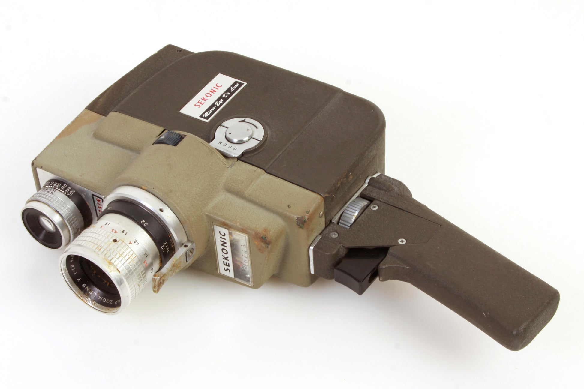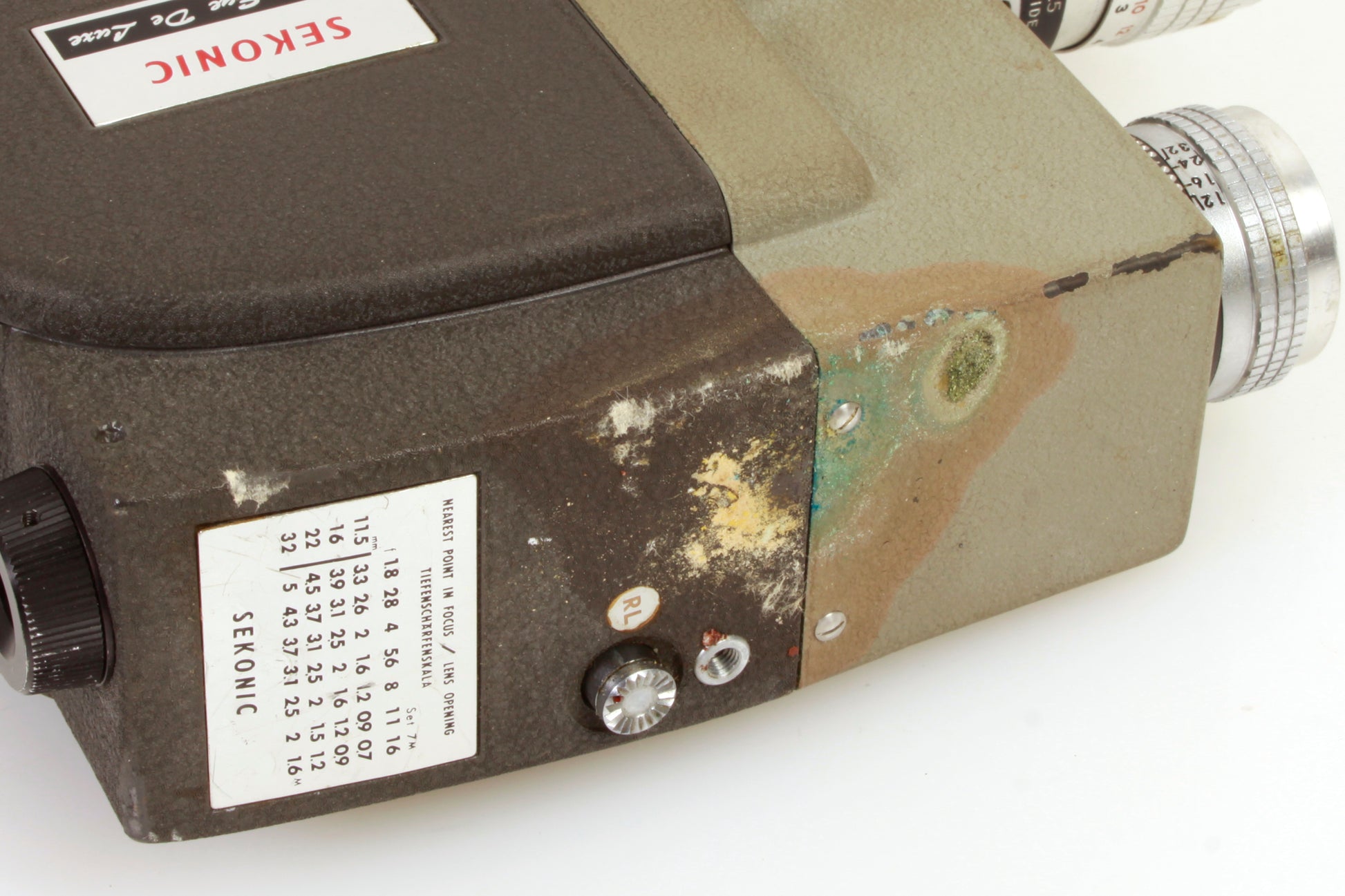 Sekonic Micro-Eye De Luxe 53 SIR camera with 1:1.8 f=11.5-32mm zoom lens. Looks to be in working order - the mechanism seems to be working, although it has not been tested with film or for accuracy. Cosmetically it has some general signs of age and use plus an area of mildew to the top. There is some dust and haze lens present to the lens but no scratches. The viewfinder looks to be clear. Sold as is.