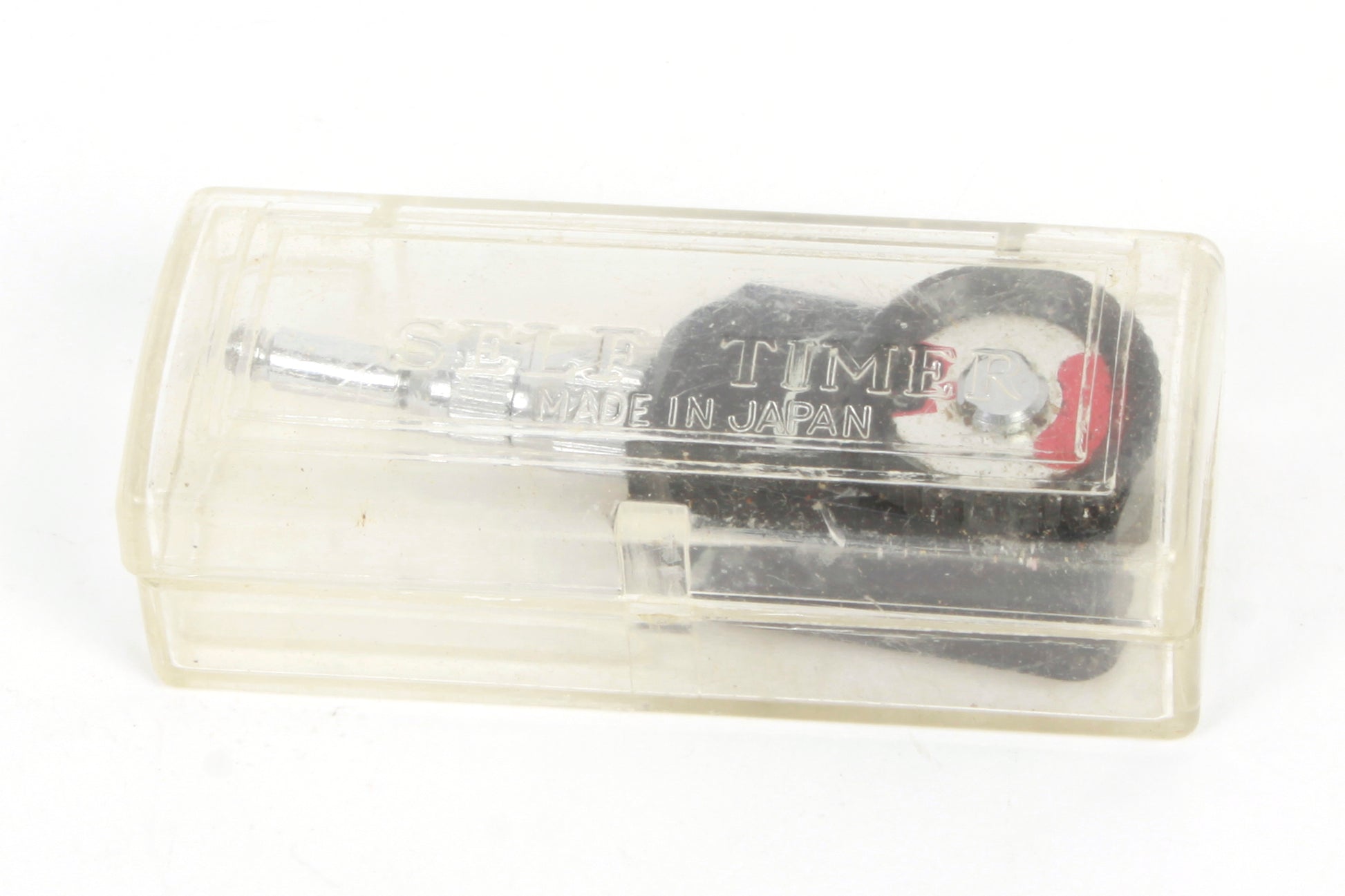 Vintage self timer. Measures approximately 2 1/2 x 13/16 x 5/8 inches. Looks to be in working order although it has not been tested for accuracy. Cosmetically it is in good vintage condition with some general signs of use but no obvious major damage.