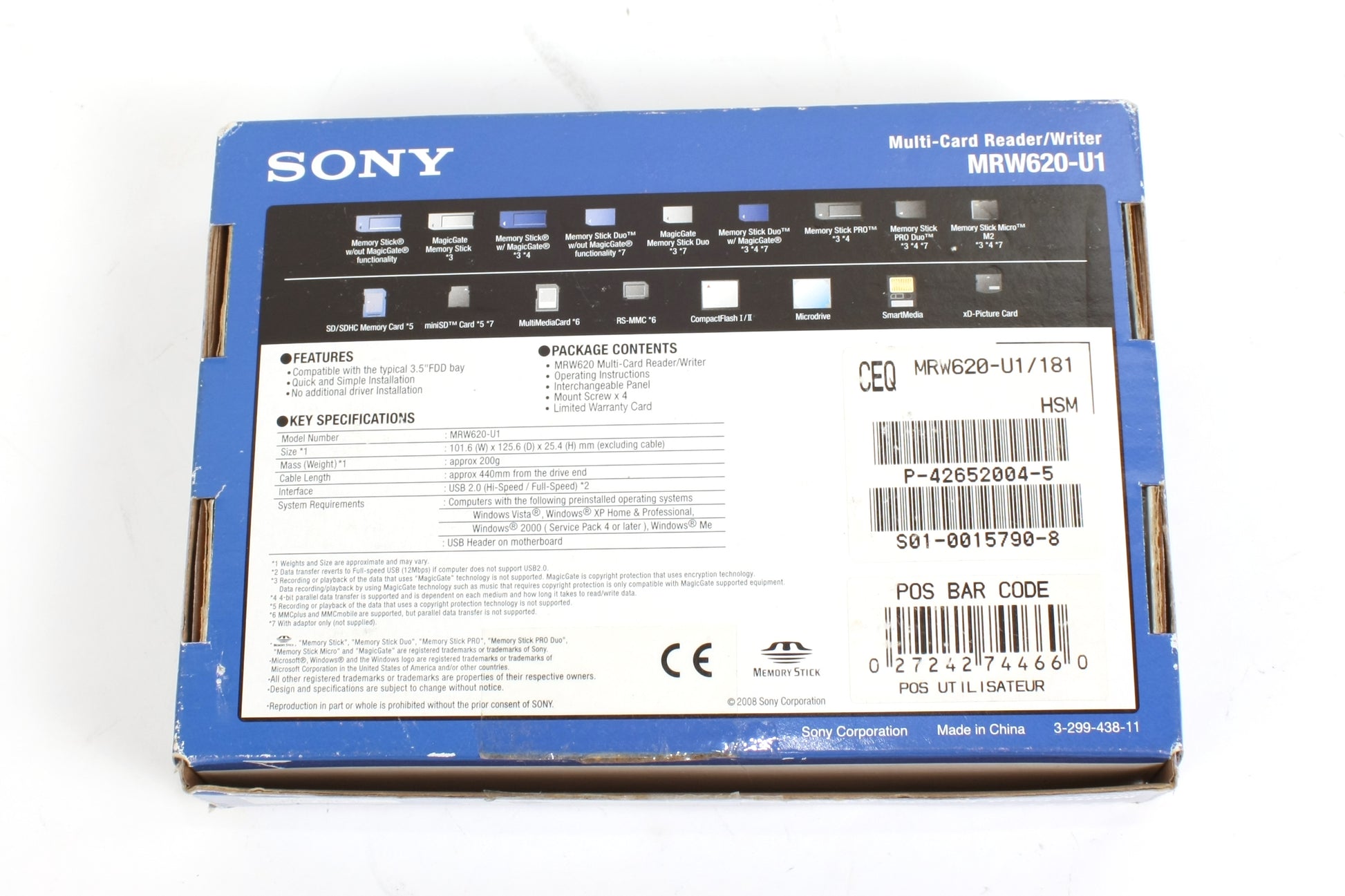 SONY MRW620-U1 MULTI-CARD READER / WRITER - INTERNAL MODEL FOR 3.5 INCH FDD BAY. SELLER REFURBISHED. COSMETICALLY IN VERY GOOD USED CONDITION. COMES WITH ORIGINAL BOX.