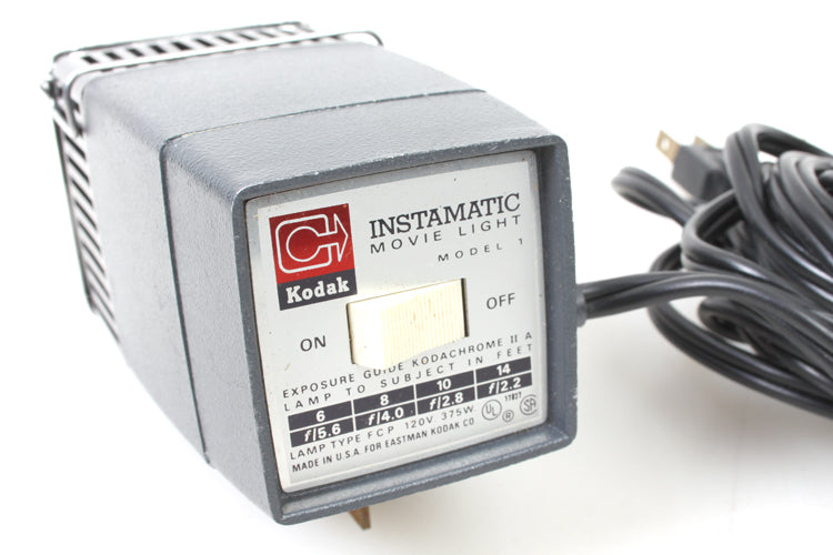KODAK M4 INSTAMATIC MOVIE CAMERA PLUS KODAK INSTAMATIC MOVIE LIGHT MODEL 1 PLUS CASE. BOTH CAMERA AND LIGHT ARE IN WORKING ORDER. SOME SIGNS OF AGE AND WEAR BUT OVERALL IN GOOD COSMETIC CONDITION. CASE MEASURES APPROXIMATELY 10 1/4 X 5 3/4 X 3 1/2 INCHES.