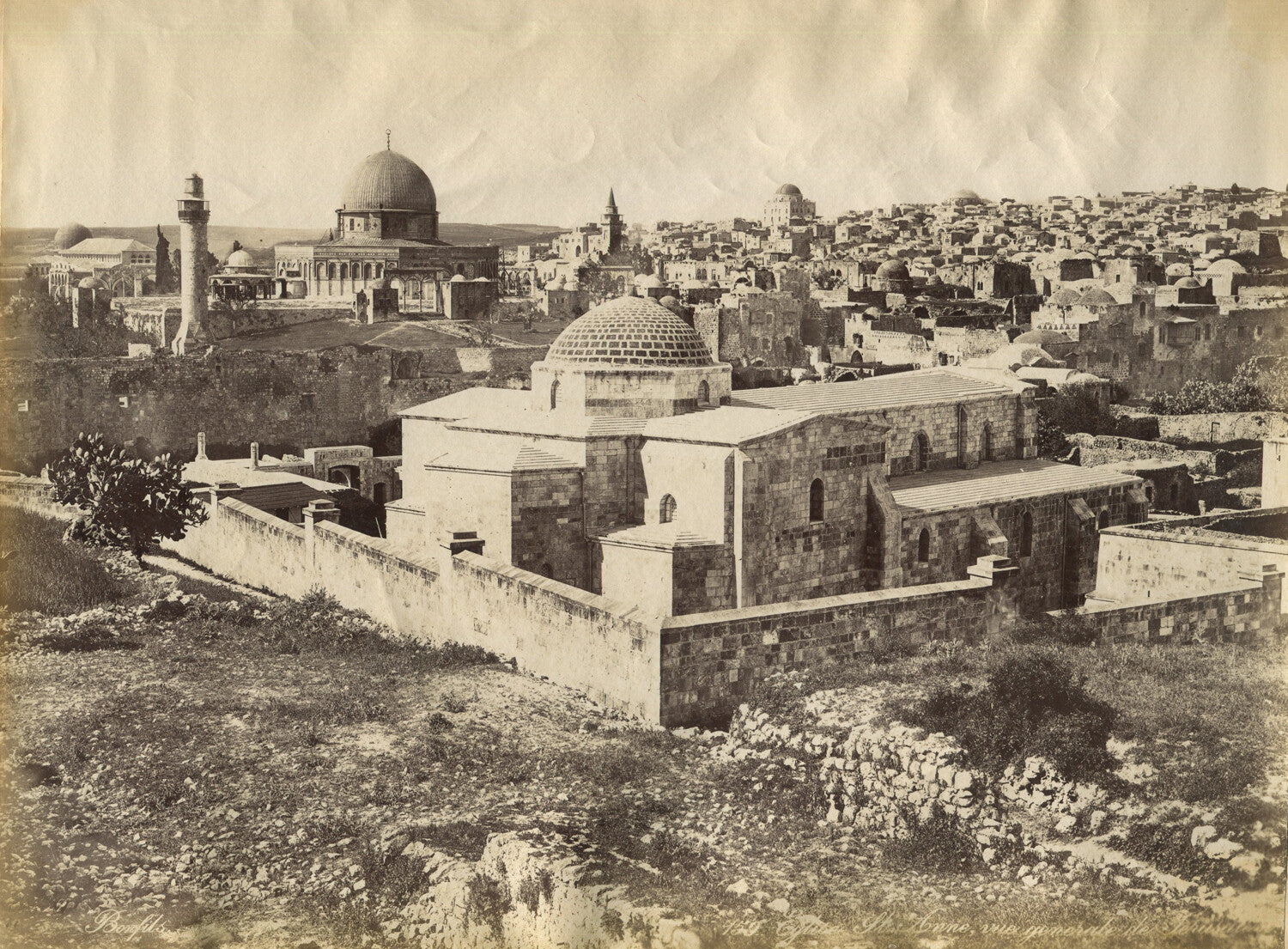 SYNAGOGUES, JERUSALEM. ALBUMEN PHOTO IN 11X14 ARCHIVAL MAT.