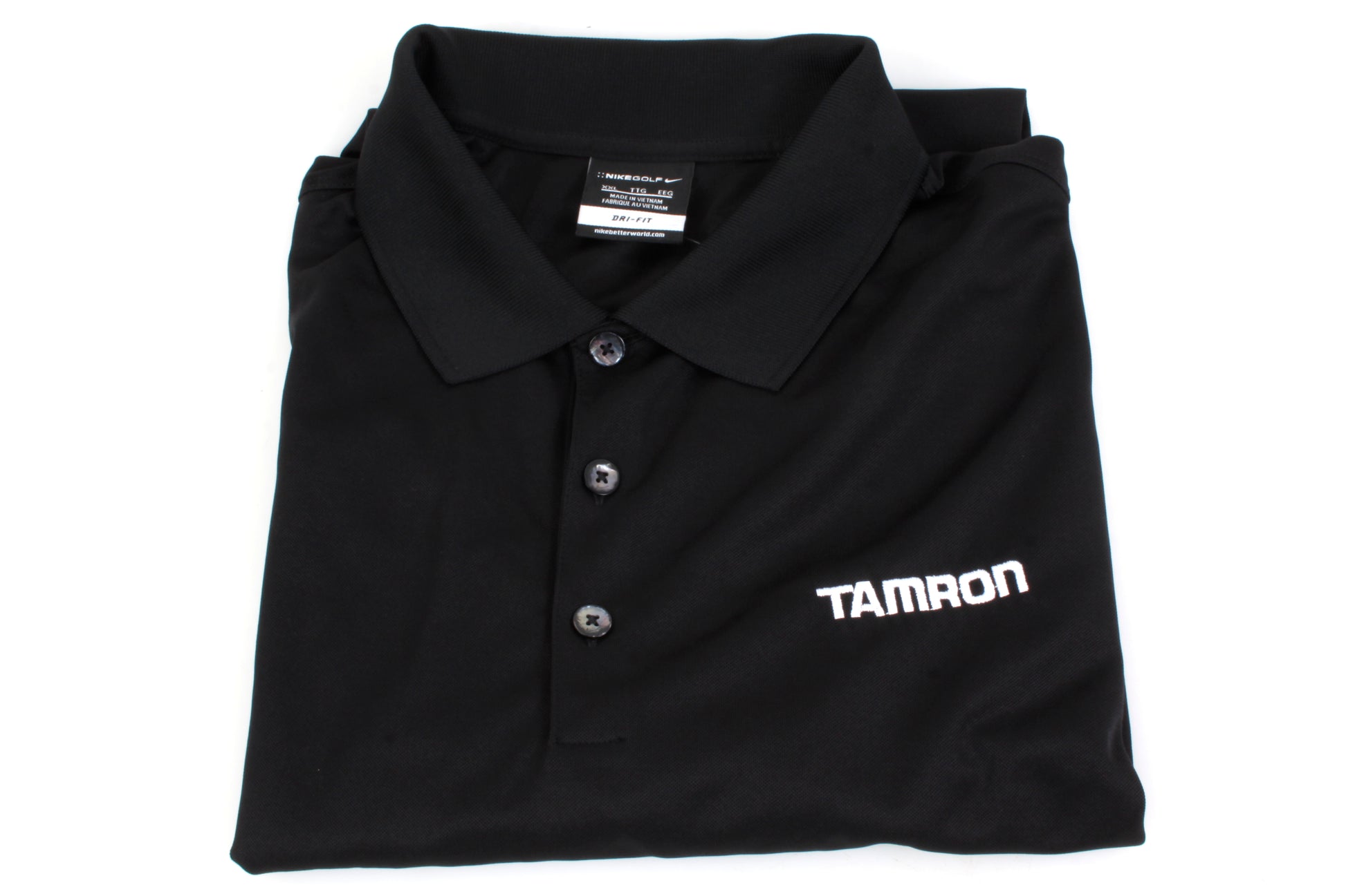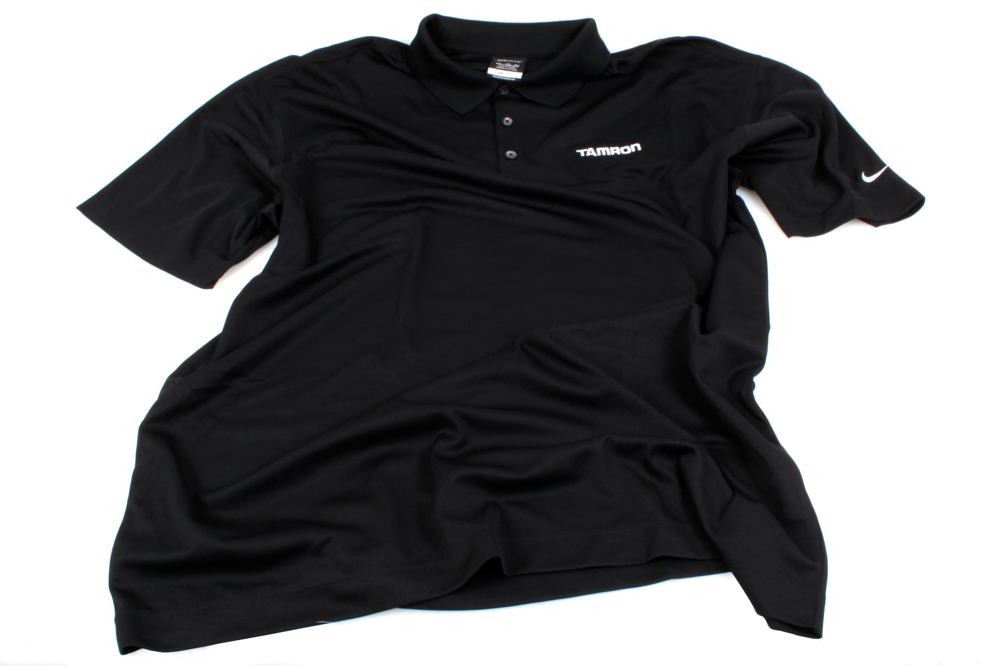 Nike Golf black polo shirt with white Tamron embroidery. Size XXL. New old stock with tags.