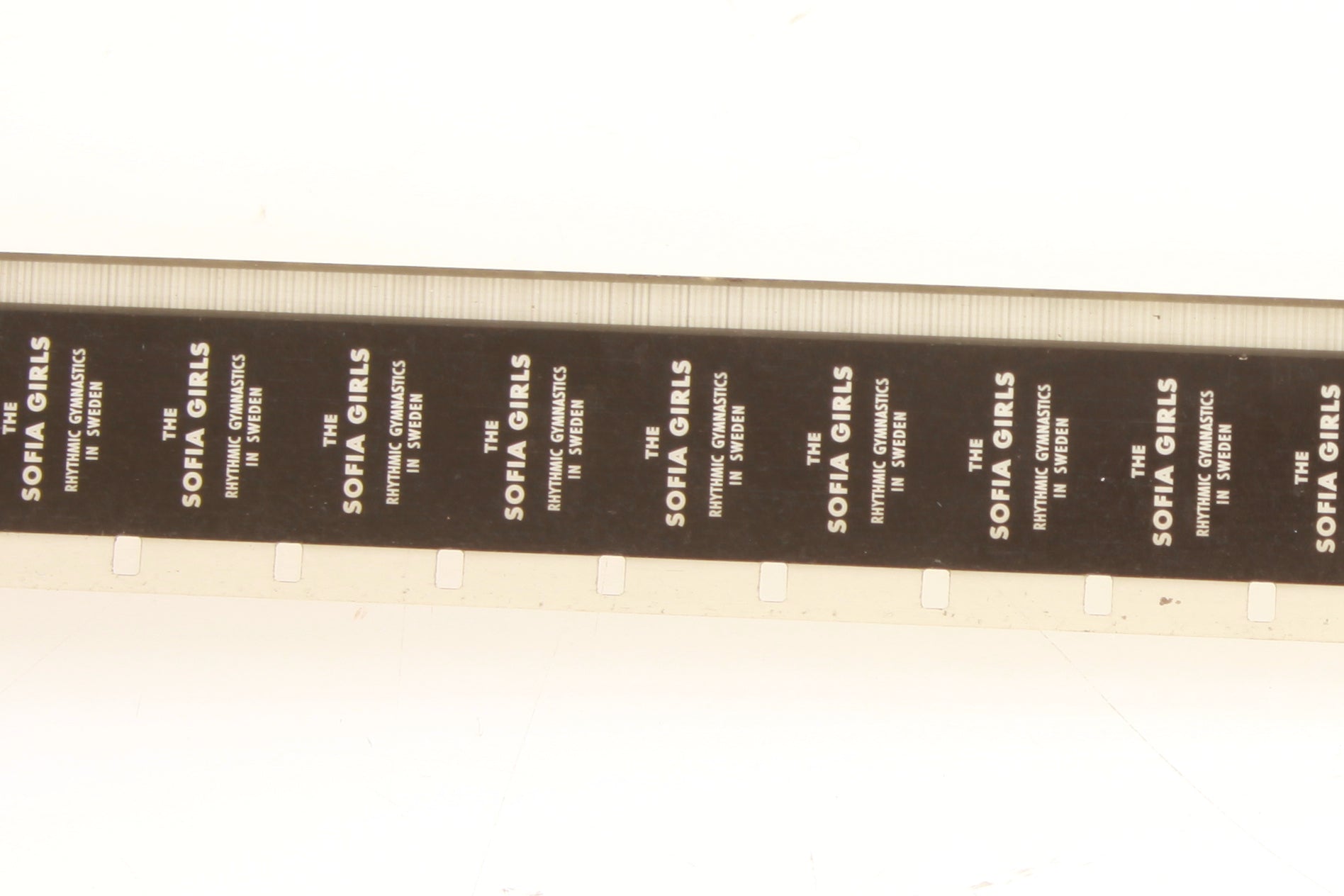 VINTAGE 16MM FILM WITH SOUND - THE SOFIA GIRLS RHYTHMIC GYMNASTICS IN SWEDEN. THE REEL MEASURES APPROXIMATELY 7 INCHES DIAMETER AND 7/8 INCH DEEP. THERE ARE SOME GENERAL SIGNS OF AGE AND USE. THERE IS A BIT OF A MUSTY SMELL DUE TO IT HAVING BEEN IN STORAGE. THE FILM LOOKS LIKE IT IS STILL USABLE, ALTHOUGH IT HAS NOT BEEN TESTED OR FULLY INSPECTED. SOLD AS IS.