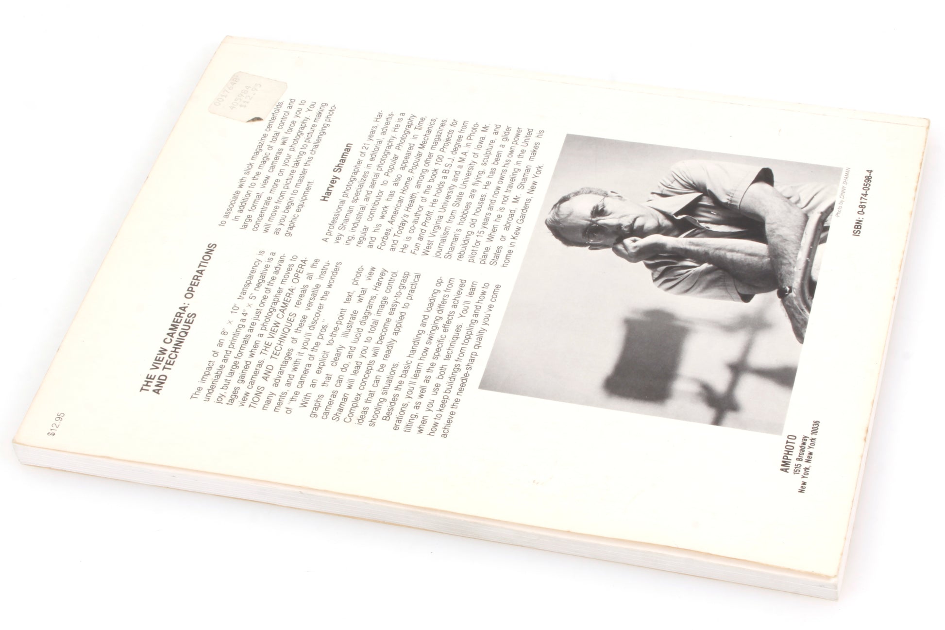 The View Camera Operations and Techniques by Harvey Shaman. Softcover. ISBN 0-8174-0598-4. Copyright 1977. 127 pages. In good vintage condition with some marks and shelf wear but the contents are still clean and readable.