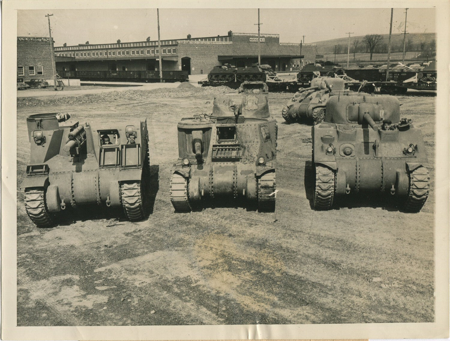 THREE ARMORED U.S. UNITS, M7, M3 AND M4. WWII. (8X10 REPRINT)