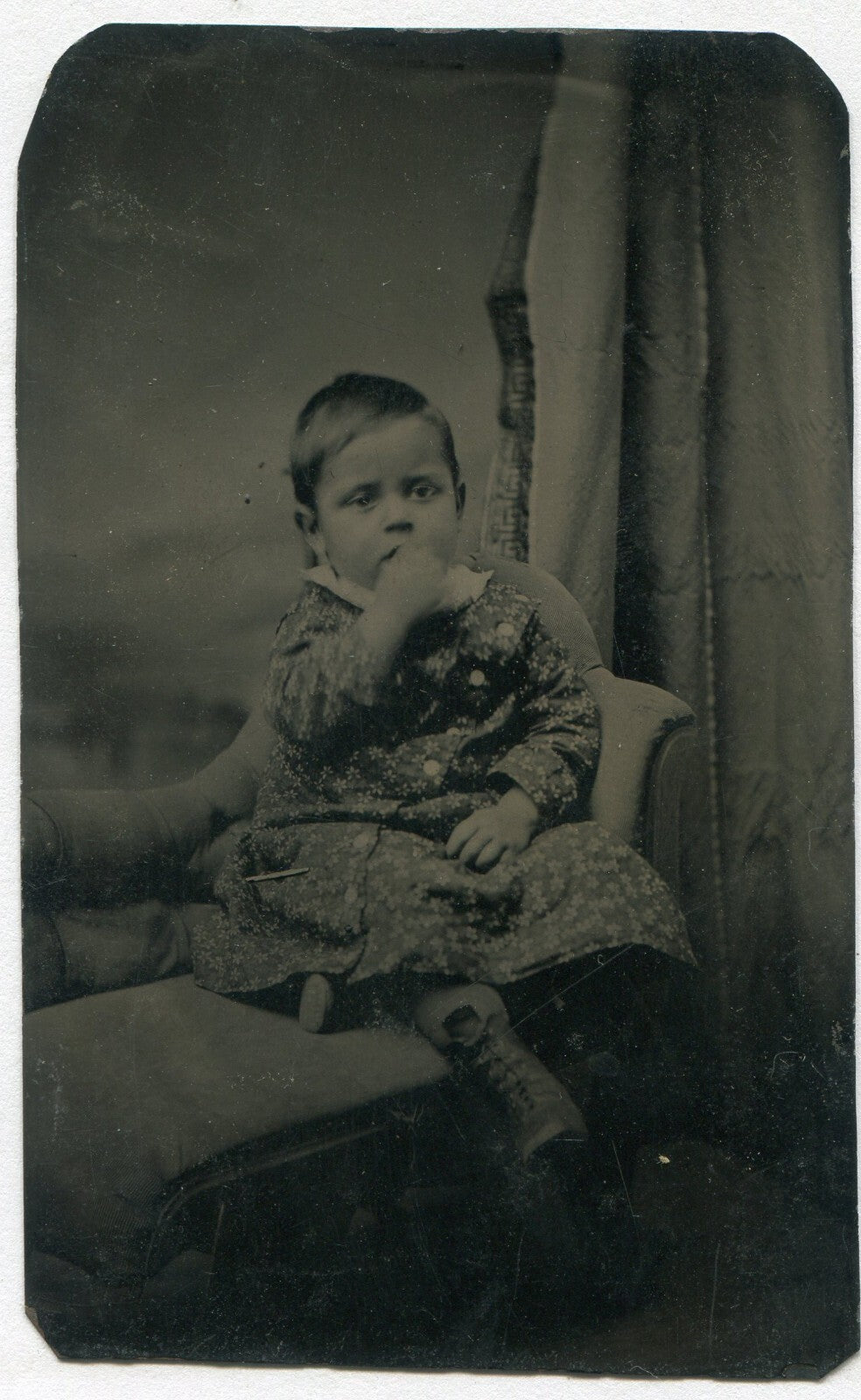 Tintype Toddler Snacking Portrait Seated, Vintage Original Photo 3.75x2.5
