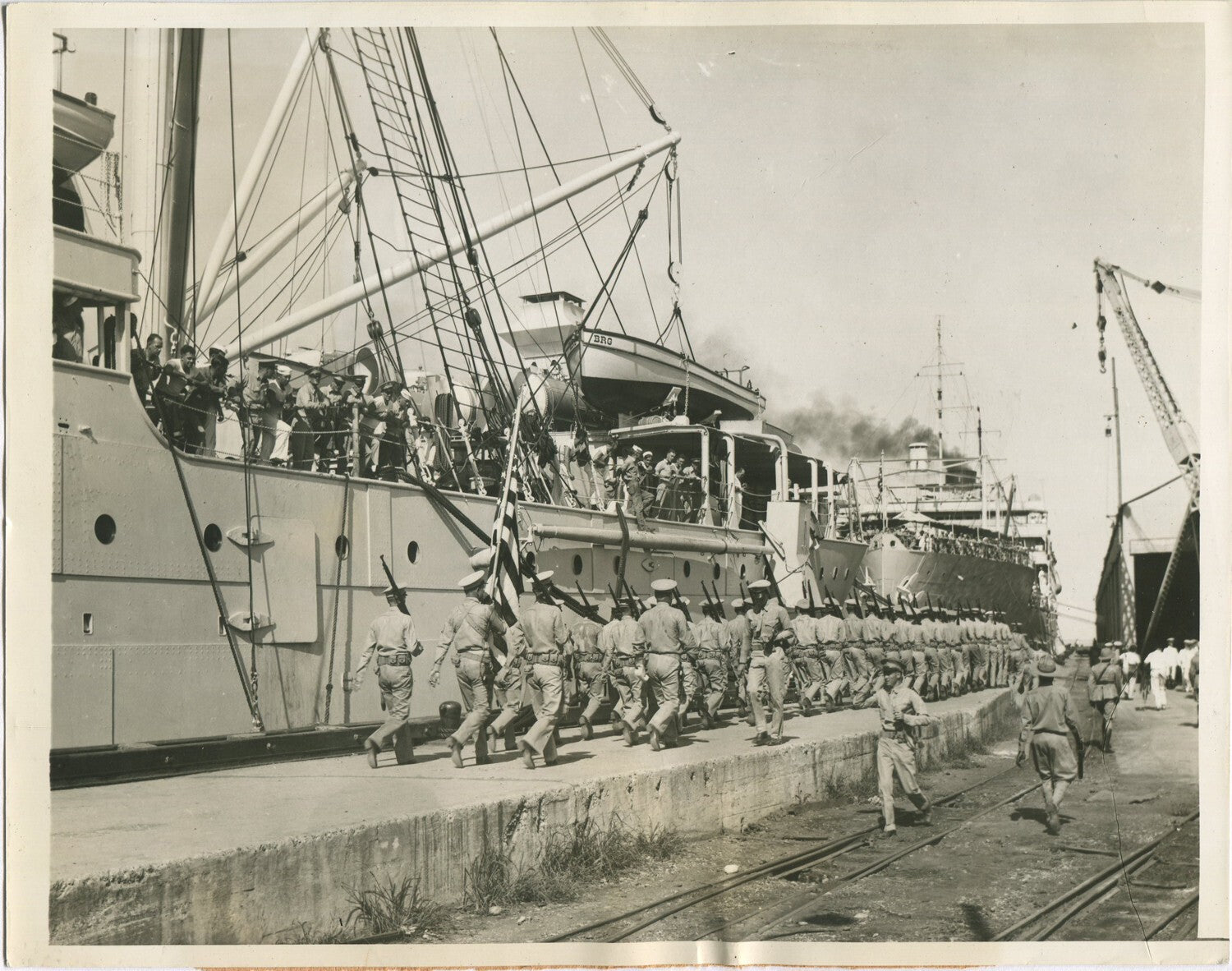 U.S. MARINES LEAVING HAITI FOR NORFOLK, VA. 1934. (8X10 REPRINT)