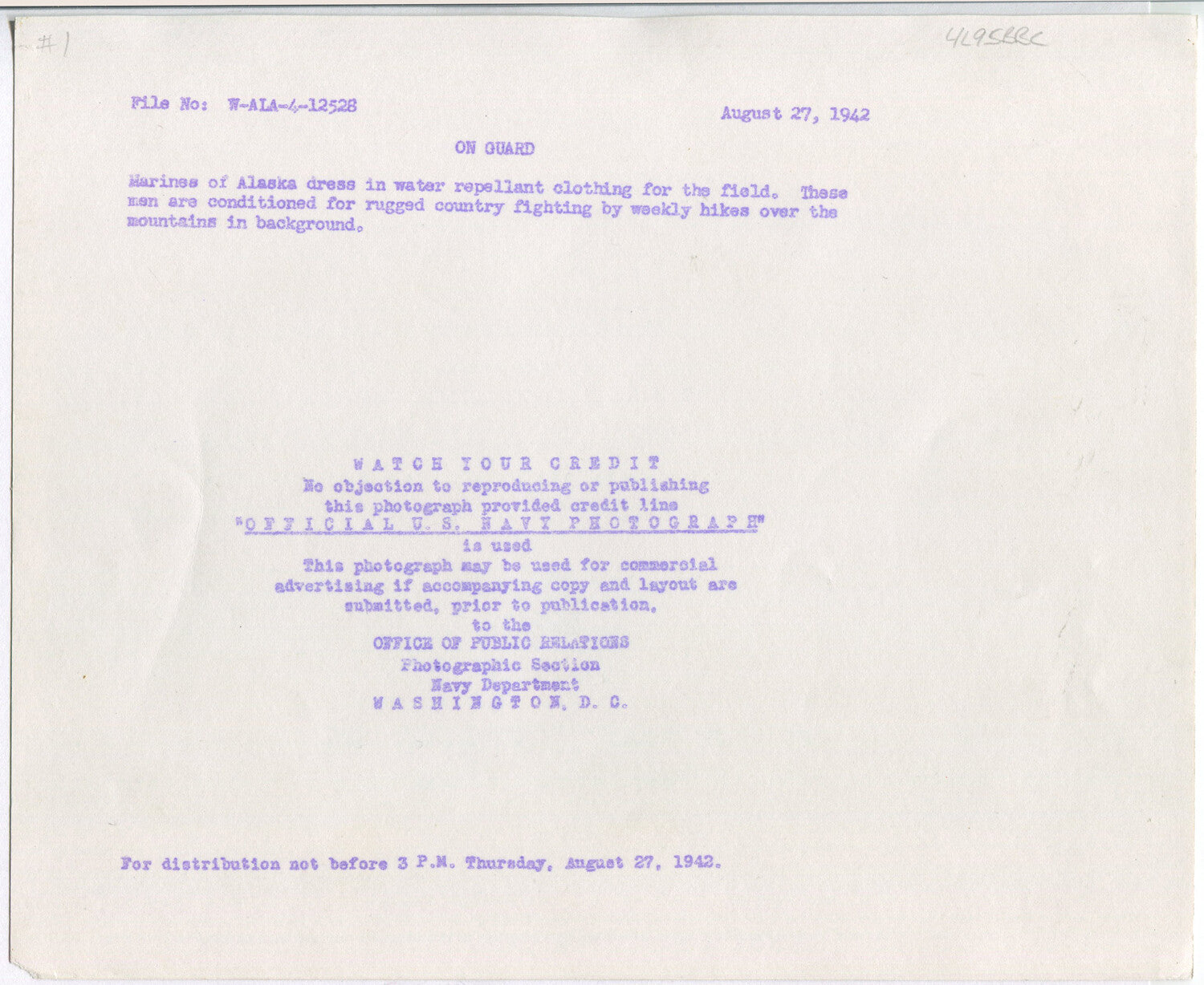 U.S. NAVY TRAINING/GAS MASKS. WWII, 1942. ALASKA. 8X10 B&W.