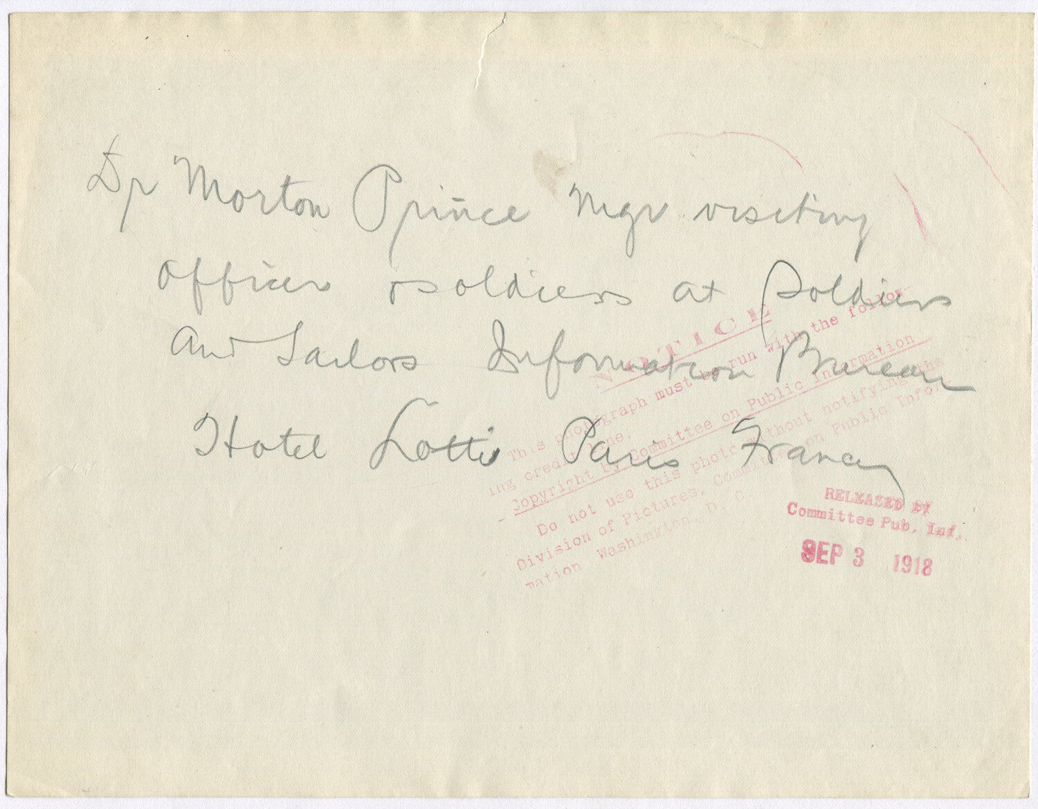 U.S. SOLDIER/SAILOR INFORMATION BUREAU. PARIS,HOTEL. 1918. 6.5X8.5 B&W.