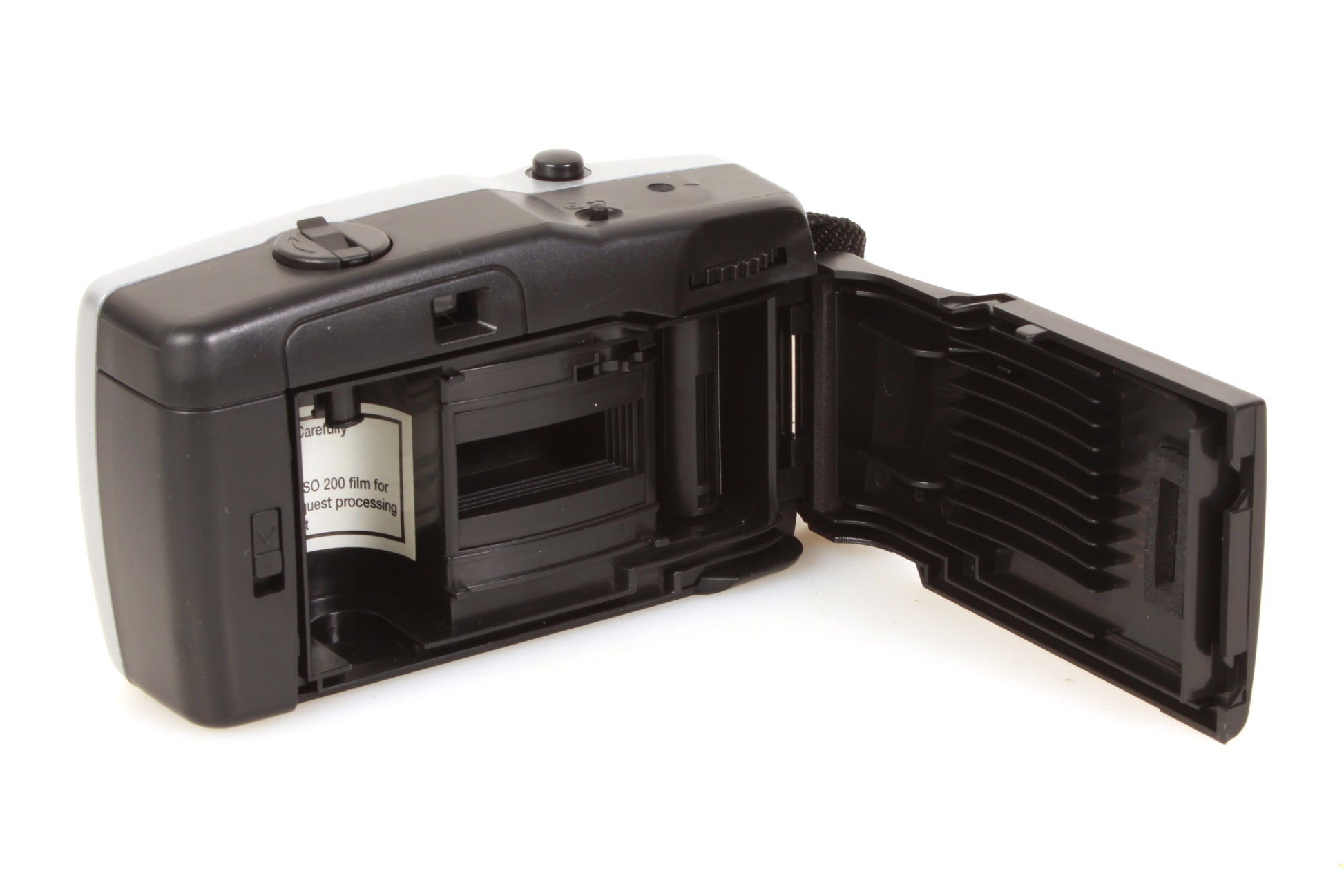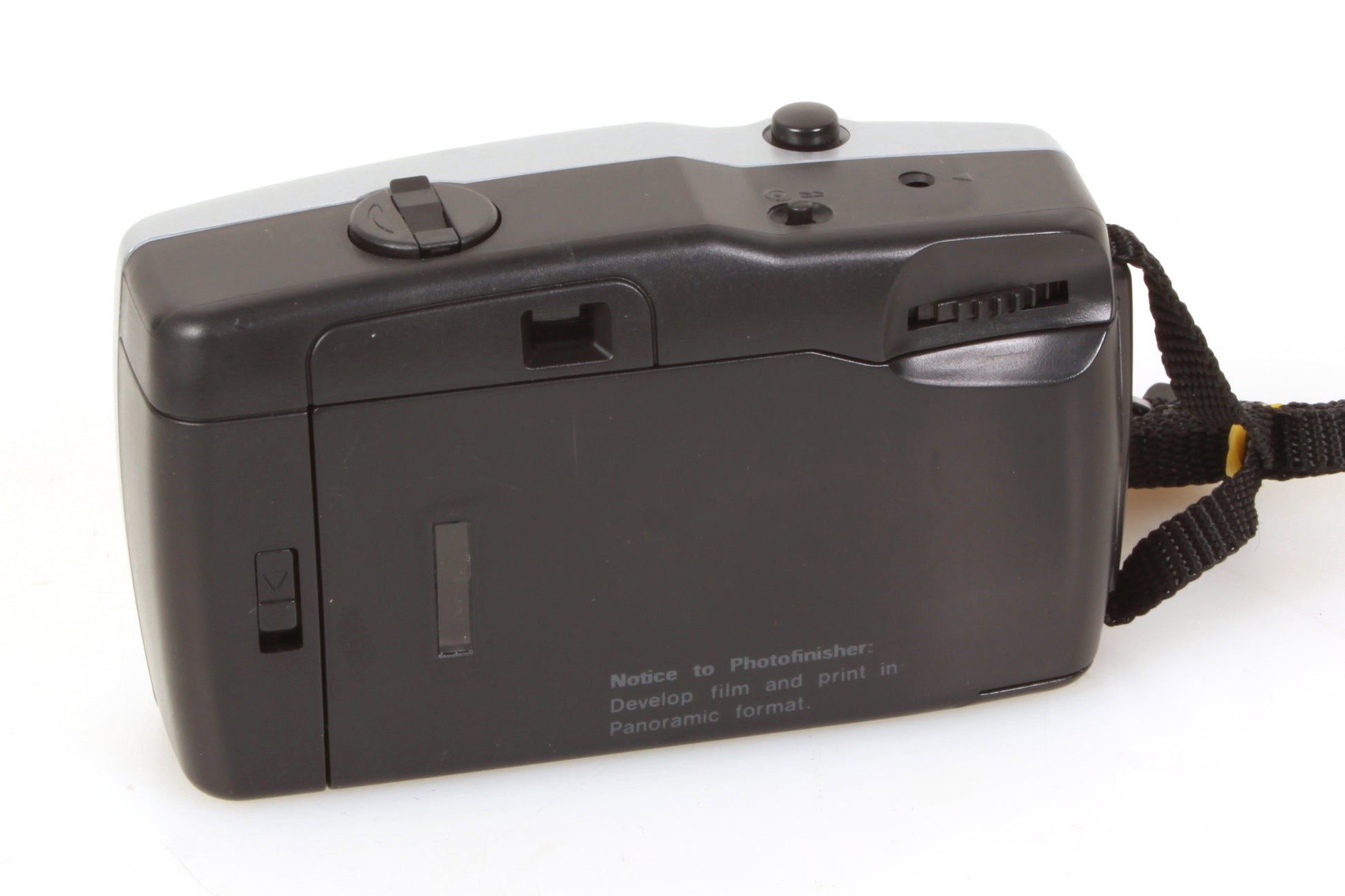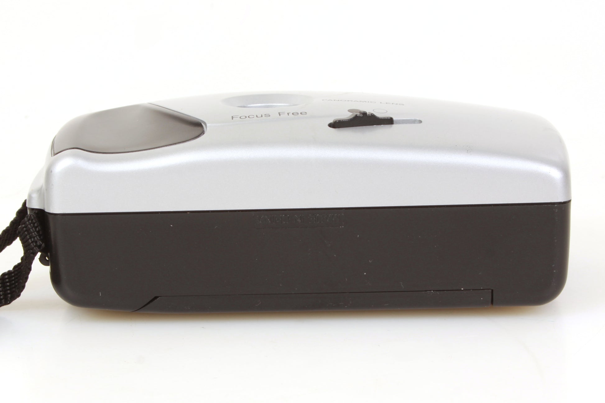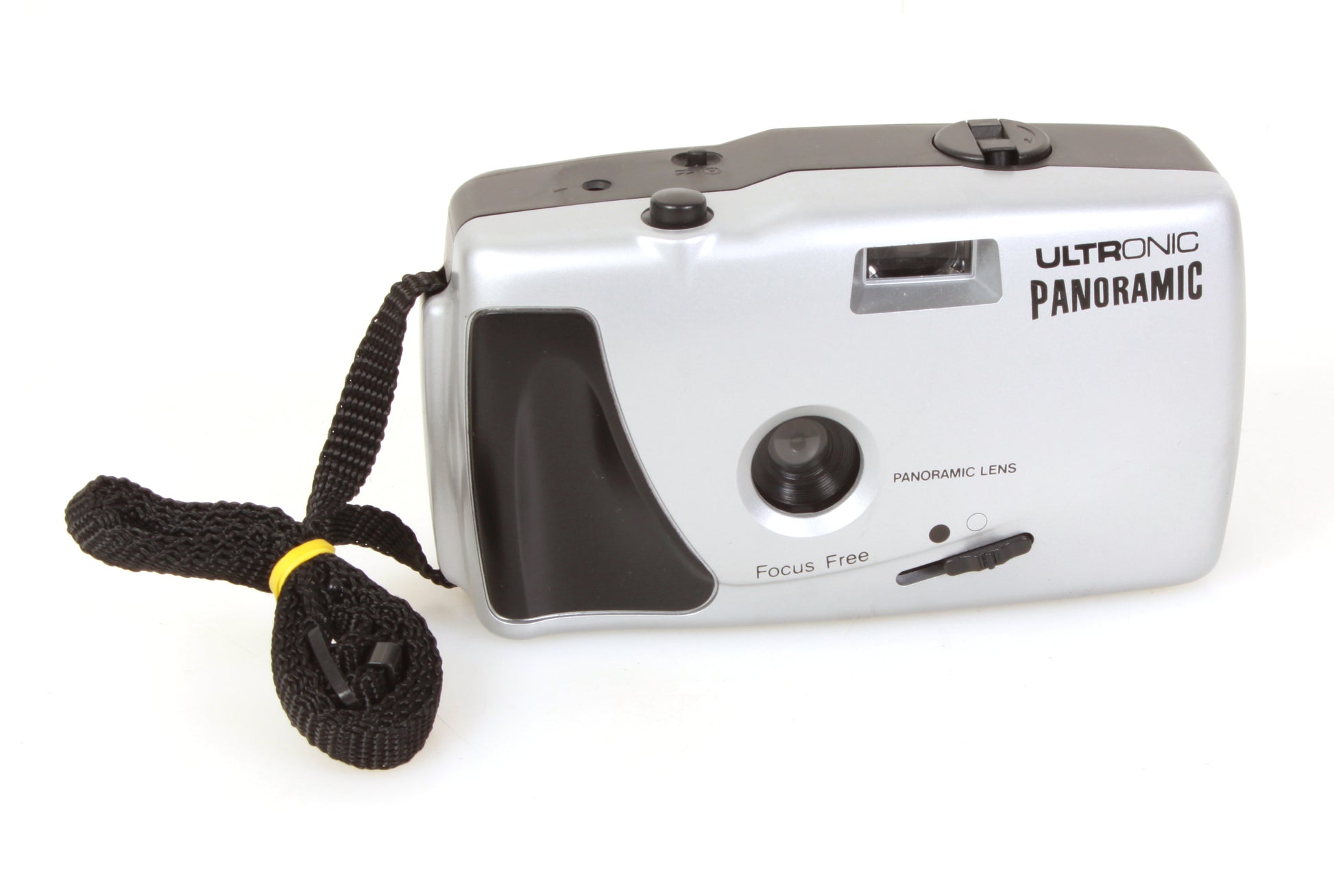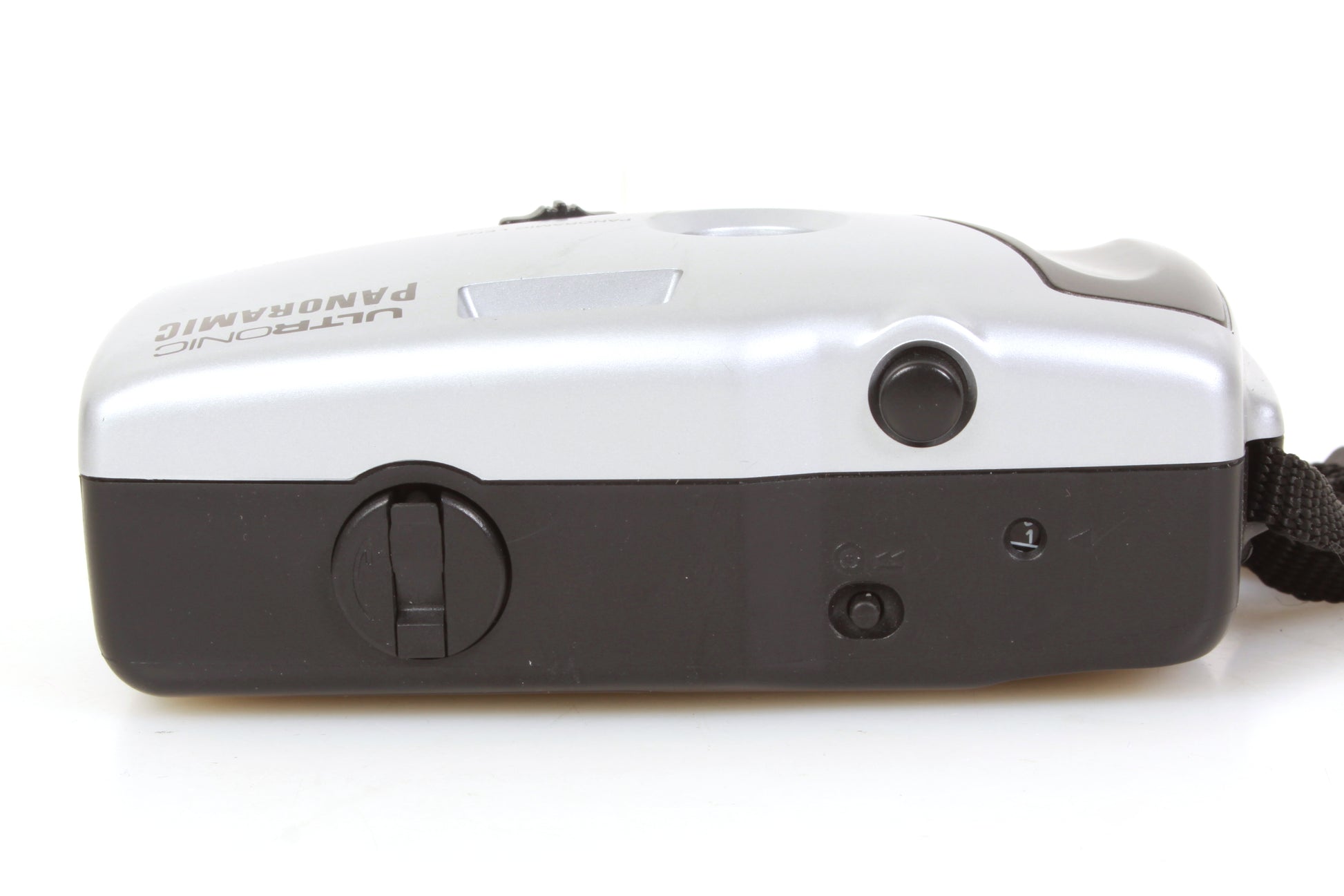 Ultronic Panoramic 35mm film camera. The shutter and winding mechanism are working fine, although it has not been tested with film or for accuracy. Cosmetically it is in very good vintage condition. It does not look like it has been used but there are some minor scratches to the exterior due to shelf wear.