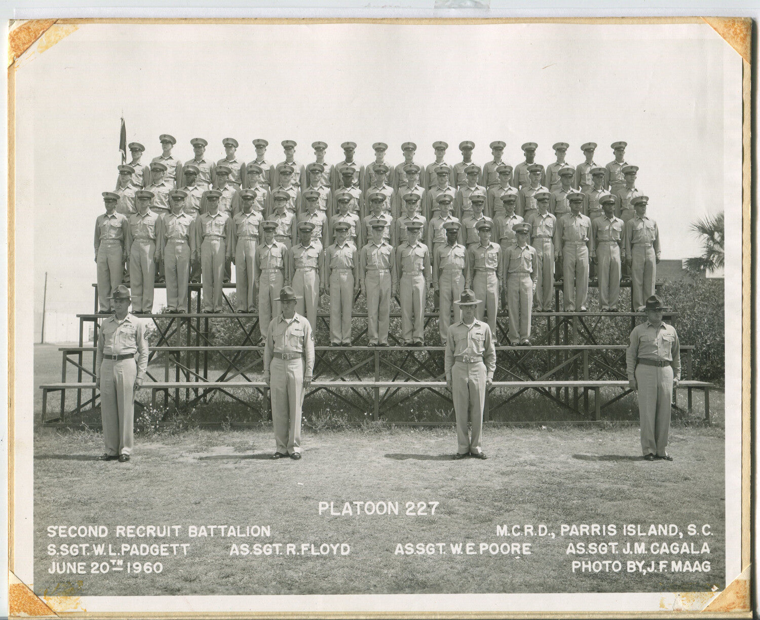 USMC PLATOON 227 GRADUATION 1960,8X10 B&W IN FOLDER. PARRIS ISLAND, S.C.