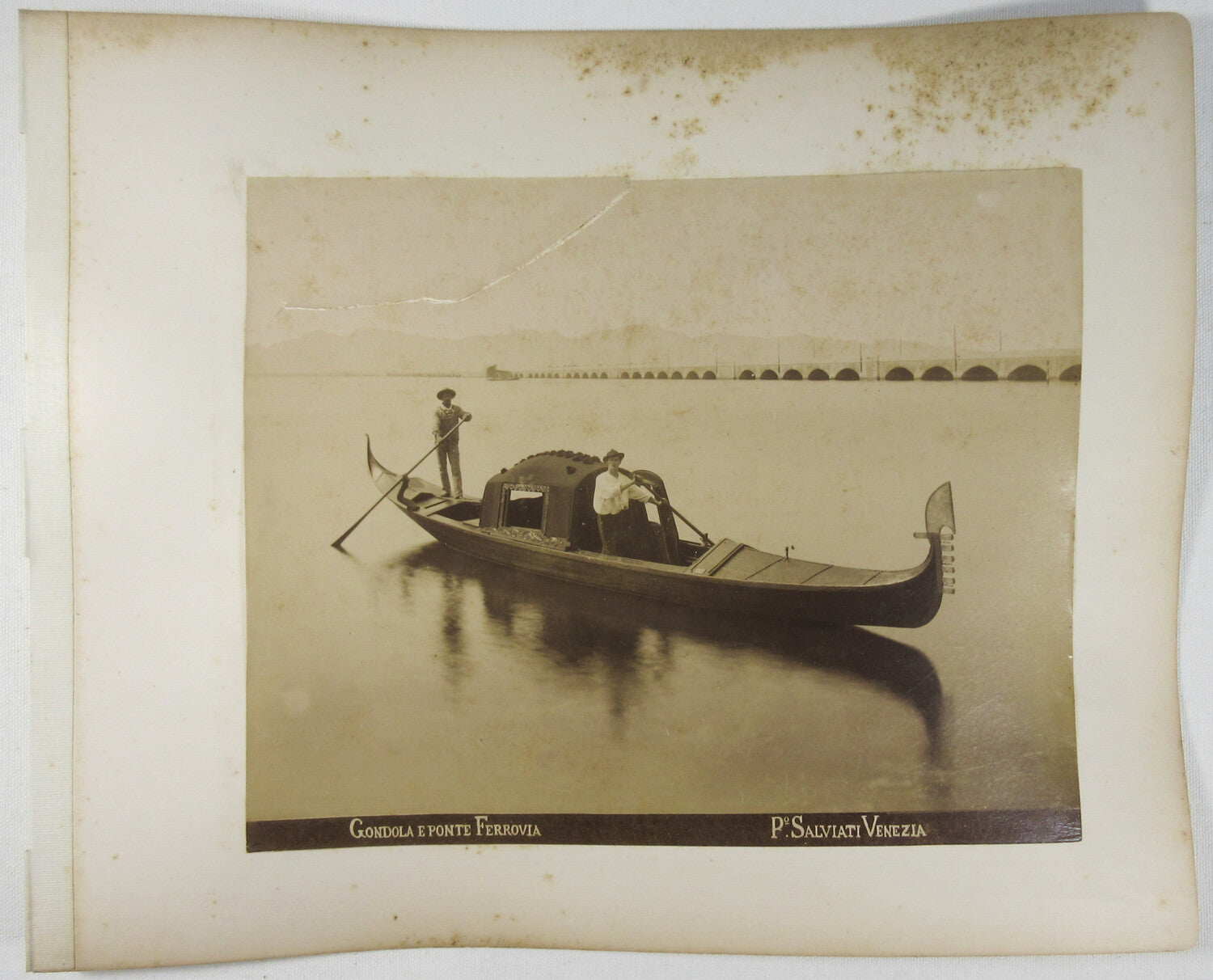 VIEW OF SAN MARCO/GONDOLA, 8X10 ALBUMEN ON BOTH SIDES OF 11X13.5 ALBUM PAGE. IMAGE AND PAGE SHOW WEAR. This item is a guaranteed authentic photo as shown from the original time period. NOT a copy, an ORIGINAL OLD PHOTO.
