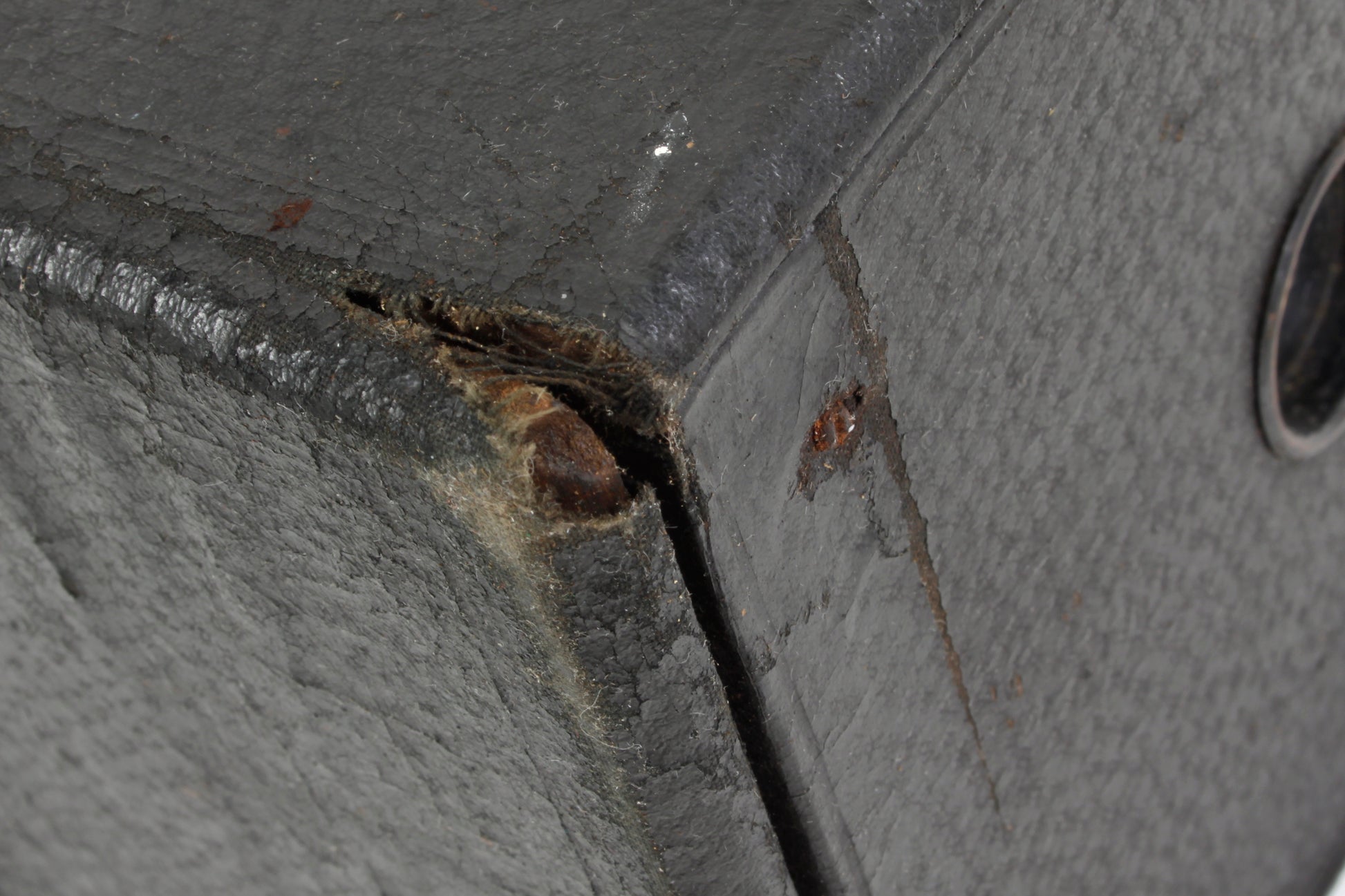 Vintage 4x5 Box Camera. Thought to be Seneca brand but not confirmed. The shutter seems to be firing fine, although it has not been tested with film or for accuracy. Cosmetically it does have some wear and tear, some rust to some of the metal parts, significant haze to the viewfinders. Comes with two film holders.