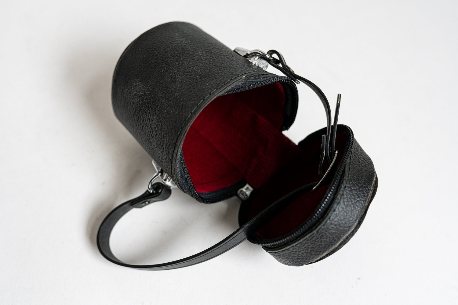 Vintage Black Leather Camera Lens / Accessory Case w/ Strap