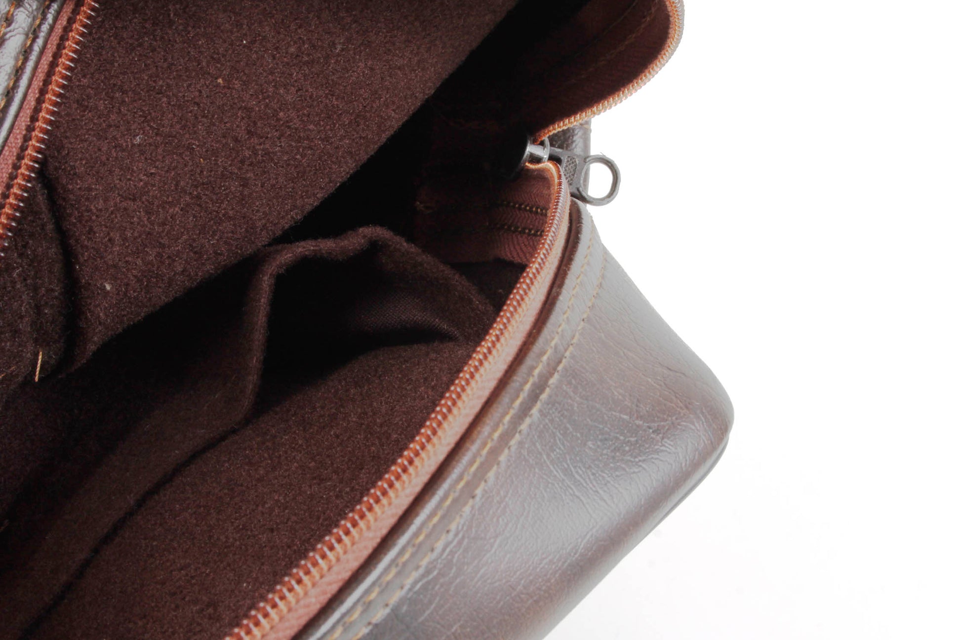 6 X 4 X 9 inch camera bag. Bag is clean with a soft inside and a pouch in the main pocket giving a great area for a lens. Some general ware but in overall great condition.