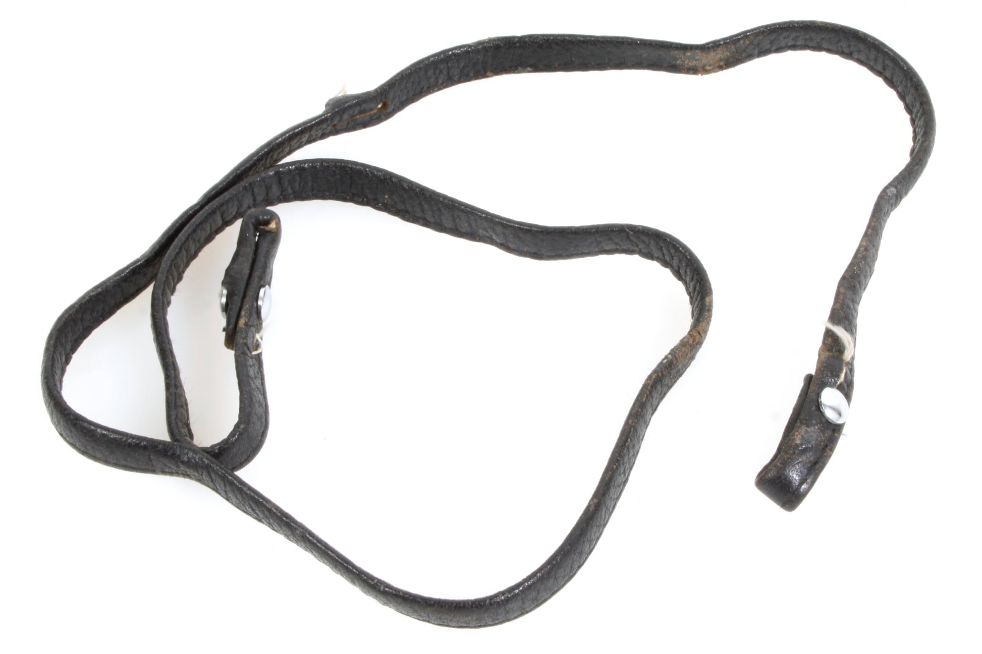 Vintage black leather camera strap. Strap measures approximately 3/8 inch wide and 32 1/2 inches long. In good vintage condition with some wear and general signs of use. (May vary slightly from the one shown in photos - will be picked at random).