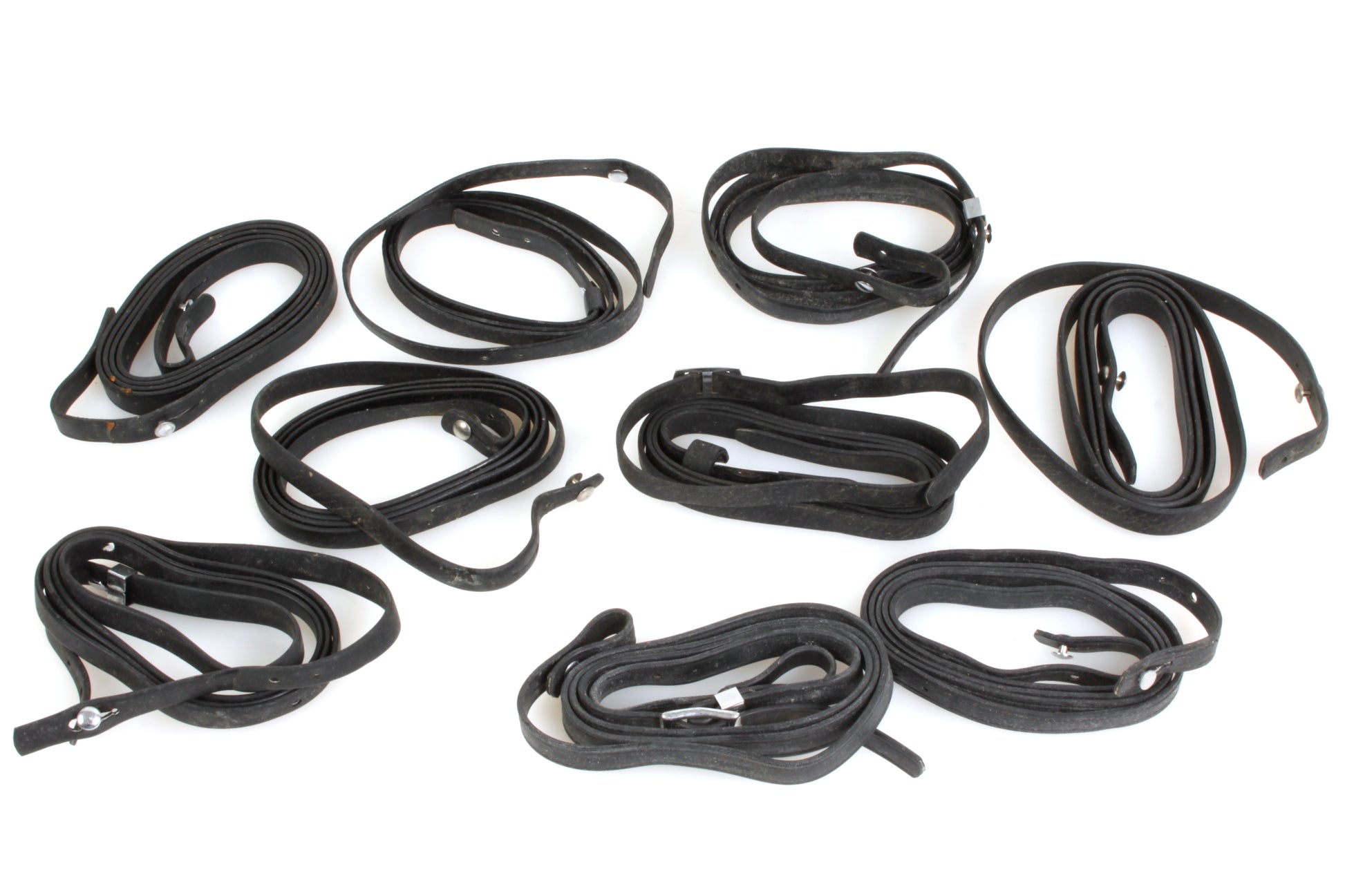 Vintage black vinyl camera strap. Strap measures approximately 3/8 inch wide and around 40-49 inches long (with most being approximately 44 inches). Multiple similar straps available - will be picked at random. Price per strap. In good vintage condition with some marks, wear and general signs of use.
