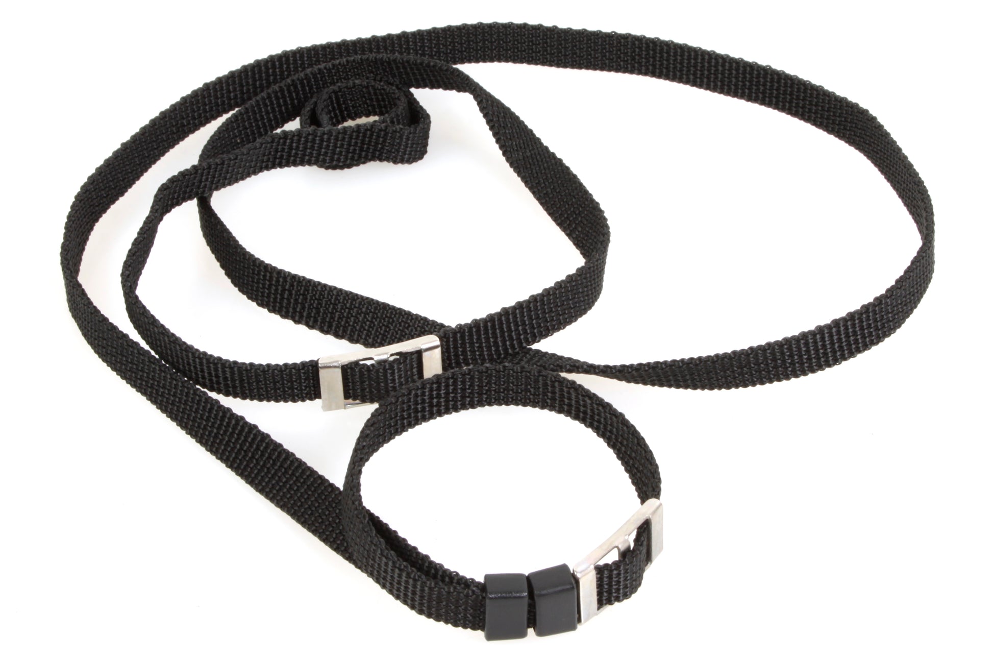 Vintage black camera strap. Strap measures approximately 3/8 inch wide and 50 inches long. New old stock.