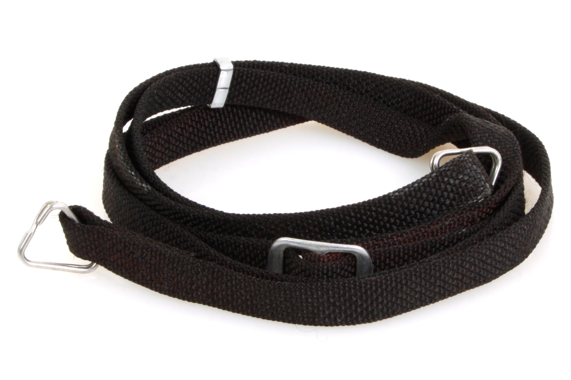 Vintage black camera strap. Strap measures approximately 3/8 inch wide and 43 inches long. In very good vintage condition with some general signs of use.