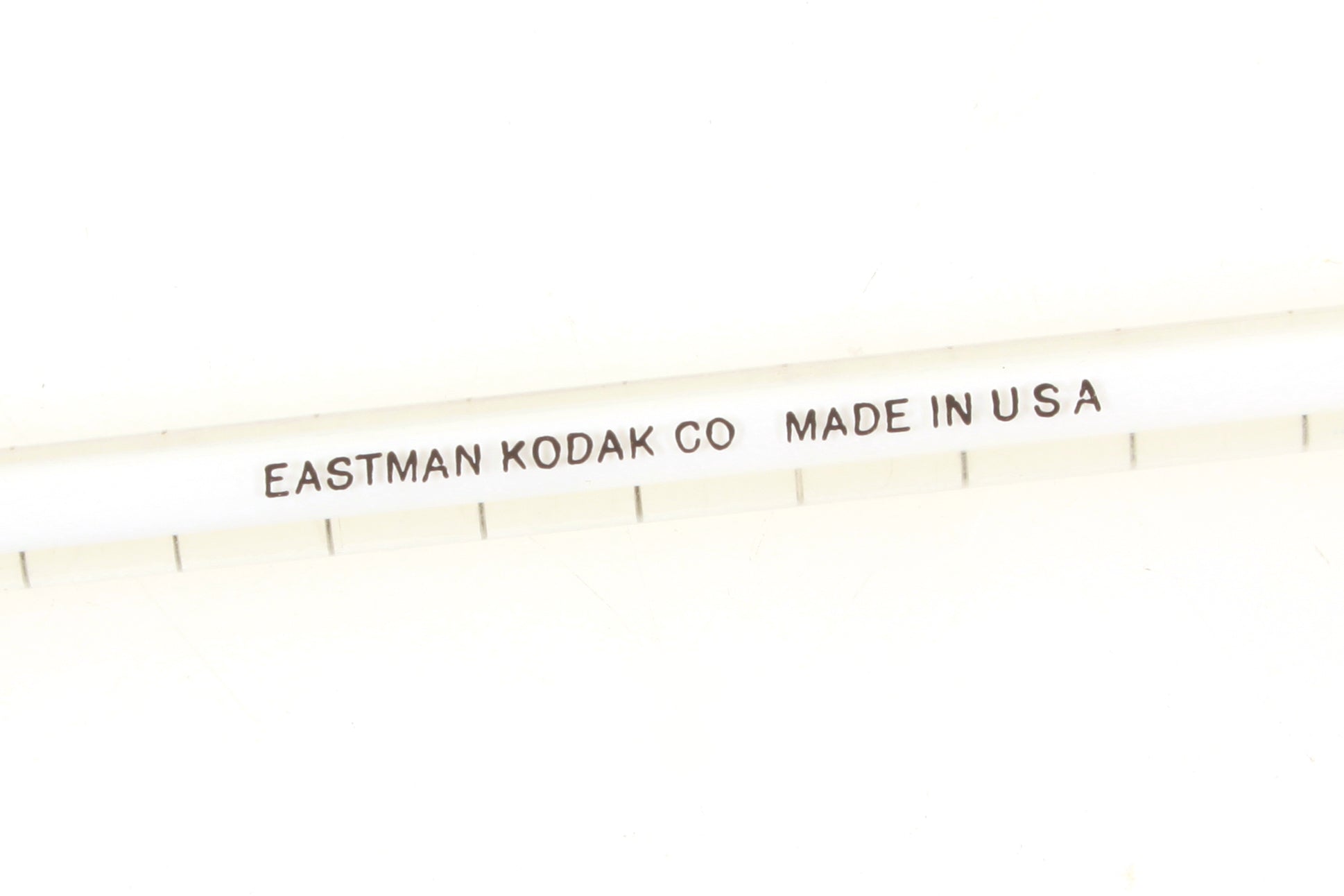 Vintage Eastman Kodak Glass Thermometer. Measures approximately 9 1/4 inches long. Cosmetically it looks to be in good vintage condition with no cracks. It looks to be working although it has not been tested so it is sold as is. Comes with wooden case which measures approximately 11 3/16 x 3/4 inches.