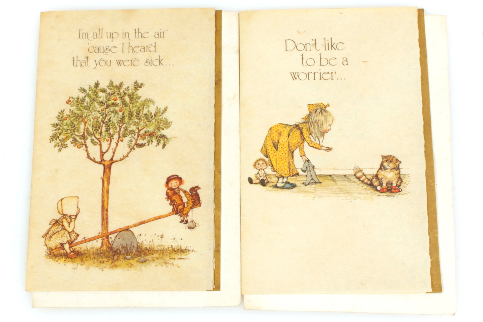 Lot of five vintage greeting cards (four different designs). Approximate sizes: 7.5 x 9.5 inches, 6.25 x 9.25 inches, 3.75 x 6 inches. Each one comes with envelope or mailing box. In good vintage condition. They have not been written in.