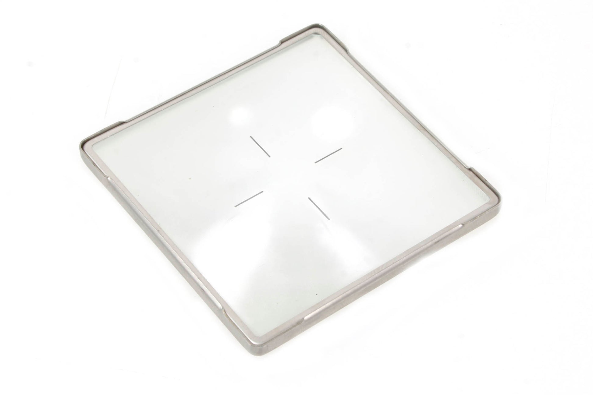 2 1/4 X 2 1/4 square focusing screen for Hasselblad. In good condition with padded case.