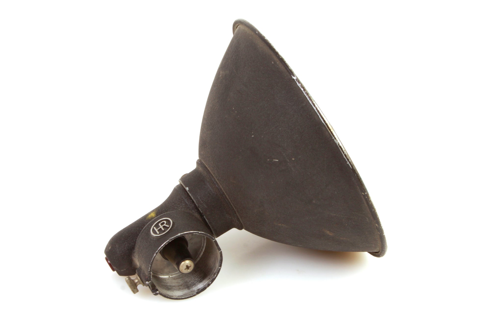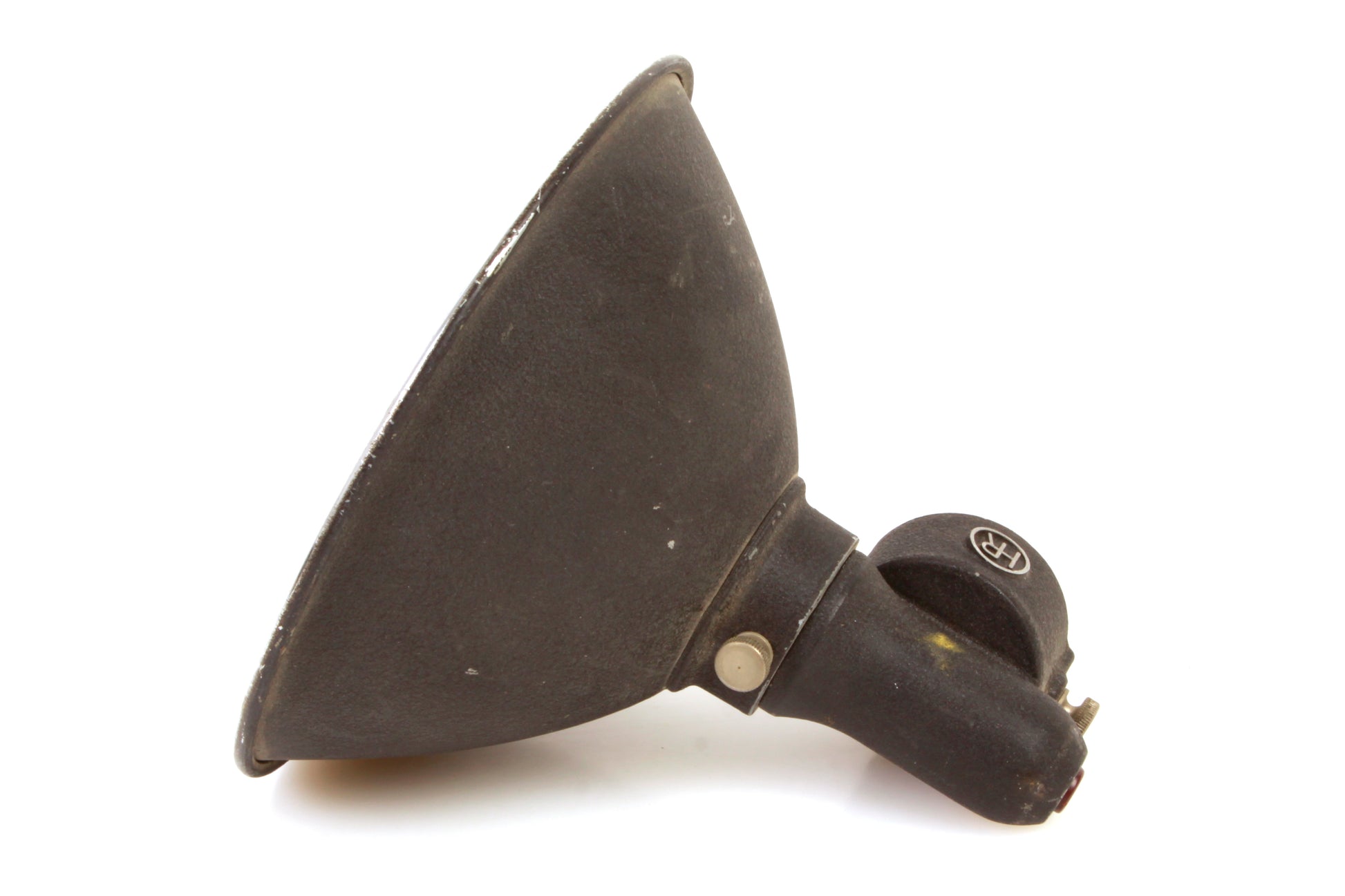 Heiland metal flash reflector. Measures approximately 6 inches diameter and 5 inches total depth. Untested and sold as is. Cosmetically it is in good vintage condition with some scratches and areas of wear.