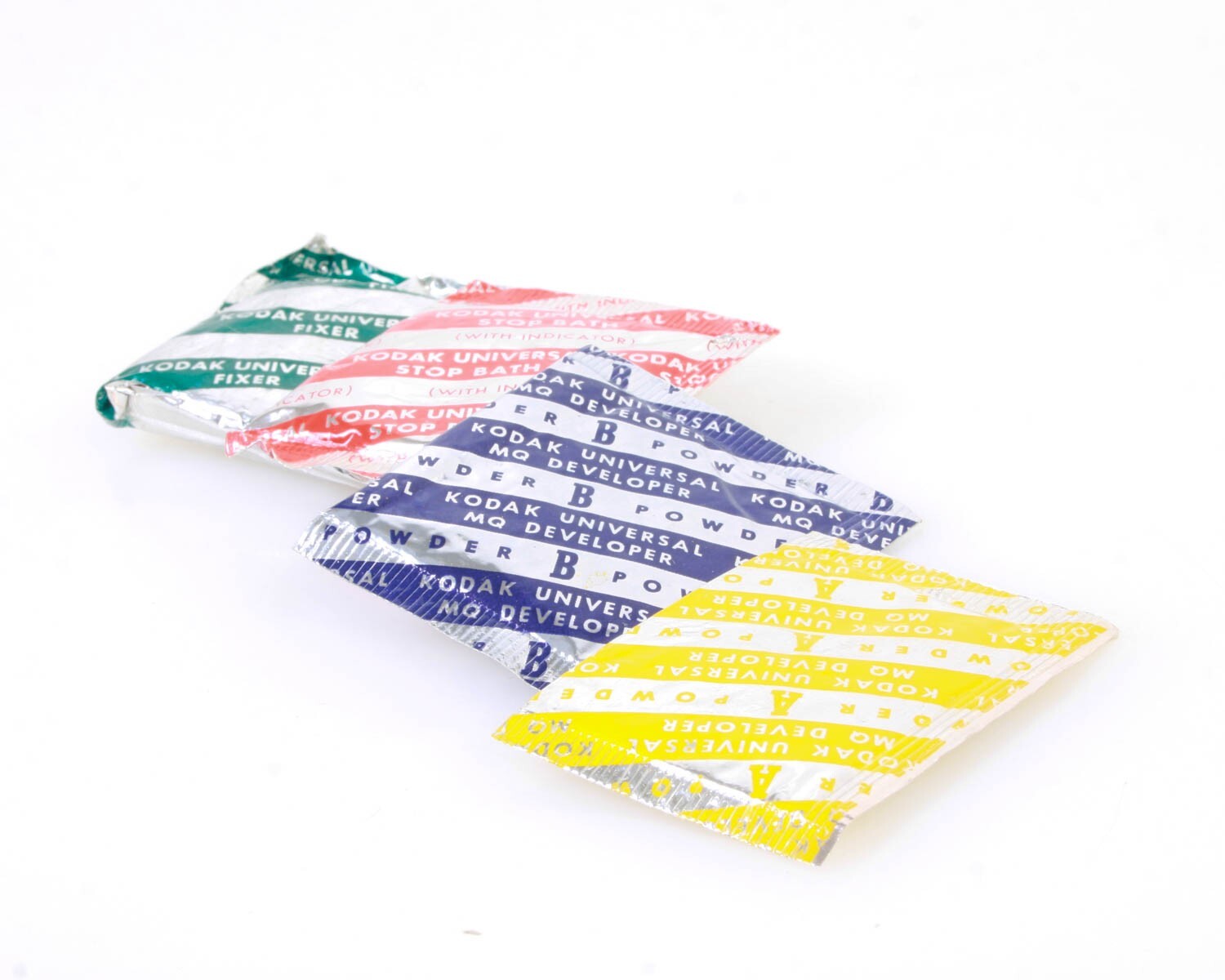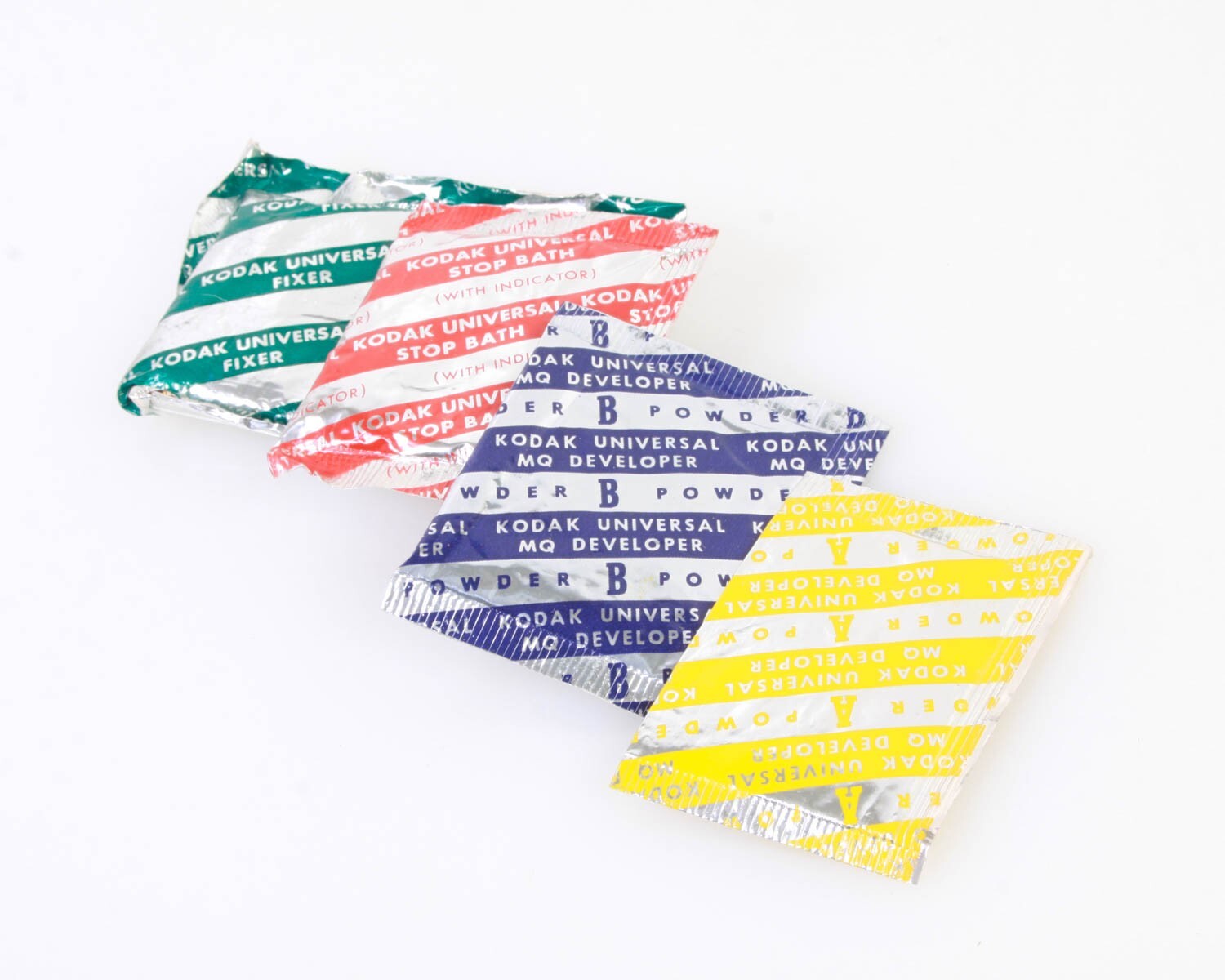 Mini travel-sized Kodak tri-chem pack with developer, stop bath, and fixer