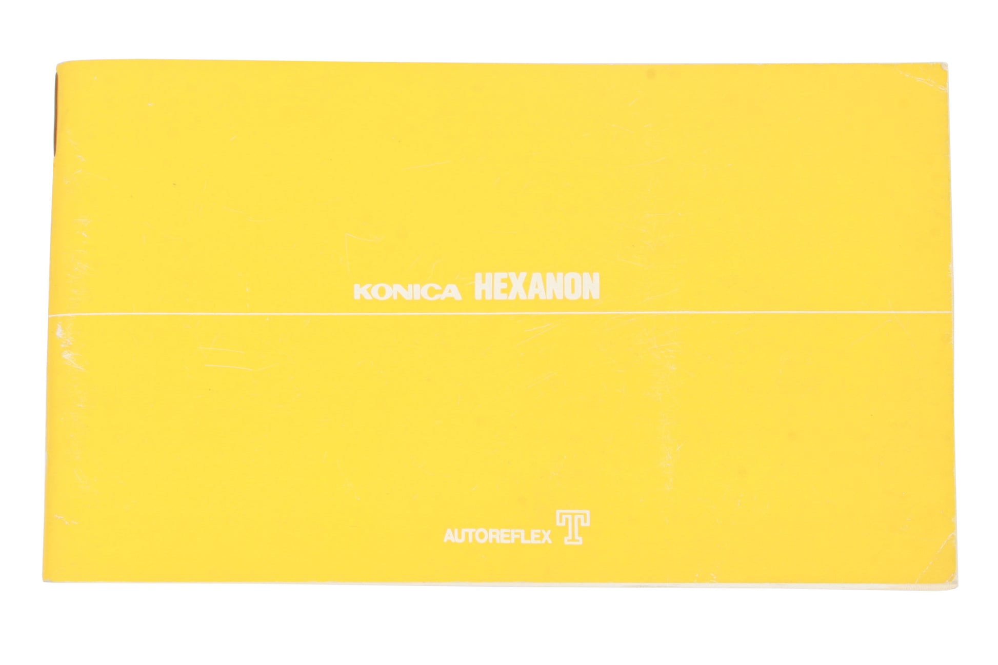 Vintage Konica Hexanon Autoreflex T brochure. 67 pages. In English, German, French and Spanish languages. In good vintage condition with some minor creasing and wear. This is an original manual, not a copy.