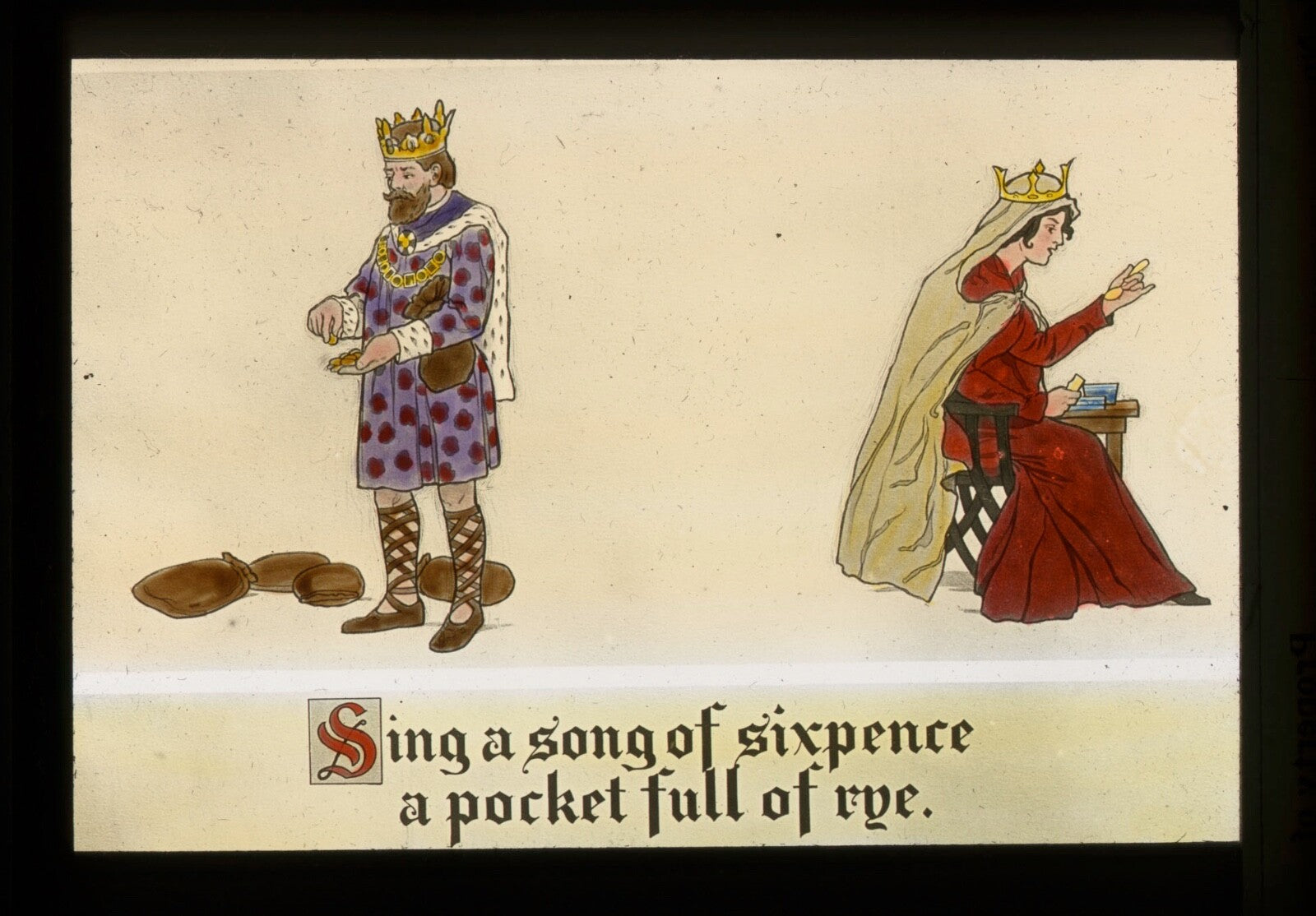 Vintage Lantern Slide Hand Tinted Illustrated 18th Century British Nursery Rhyme