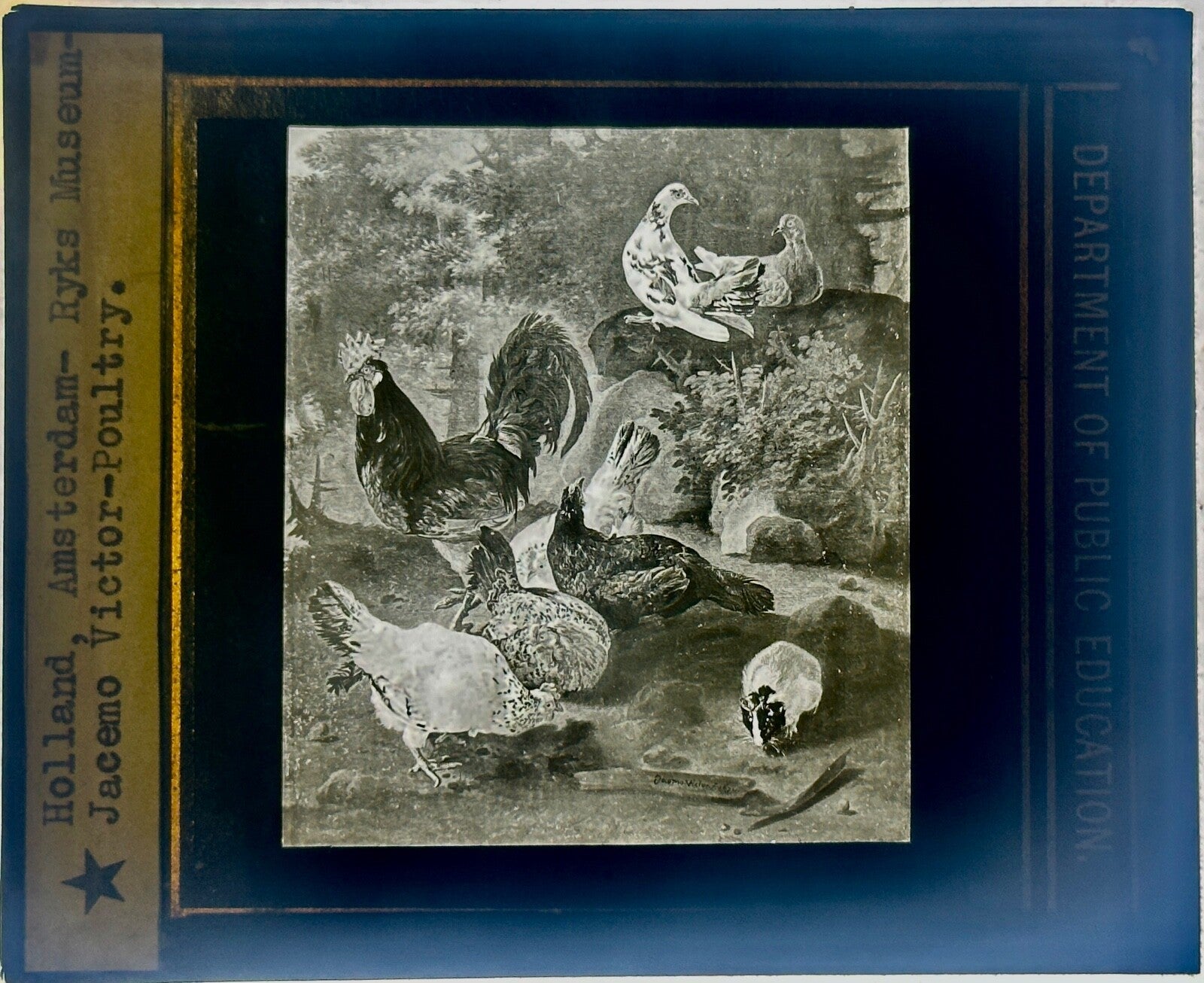 VINTAGE LANTERN SLIDE RYKS MUSEUM- JACEMO VICTOR "POULTRY" 3.25X4IN