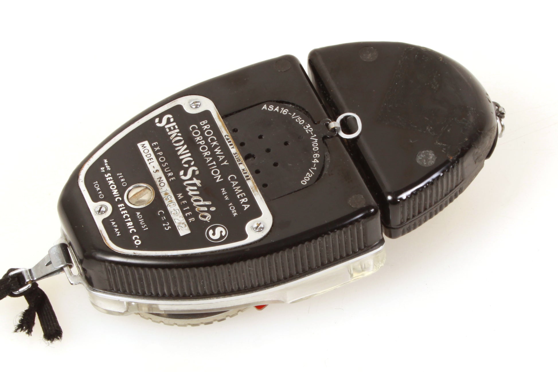 Brockway Model S light meter. It looks to be in working order but it has not been tested for accuracy so it is sold as is. Cosmetically it is in good vintage condition with some general signs of age and use but no obvious major damage. Comes with strap.