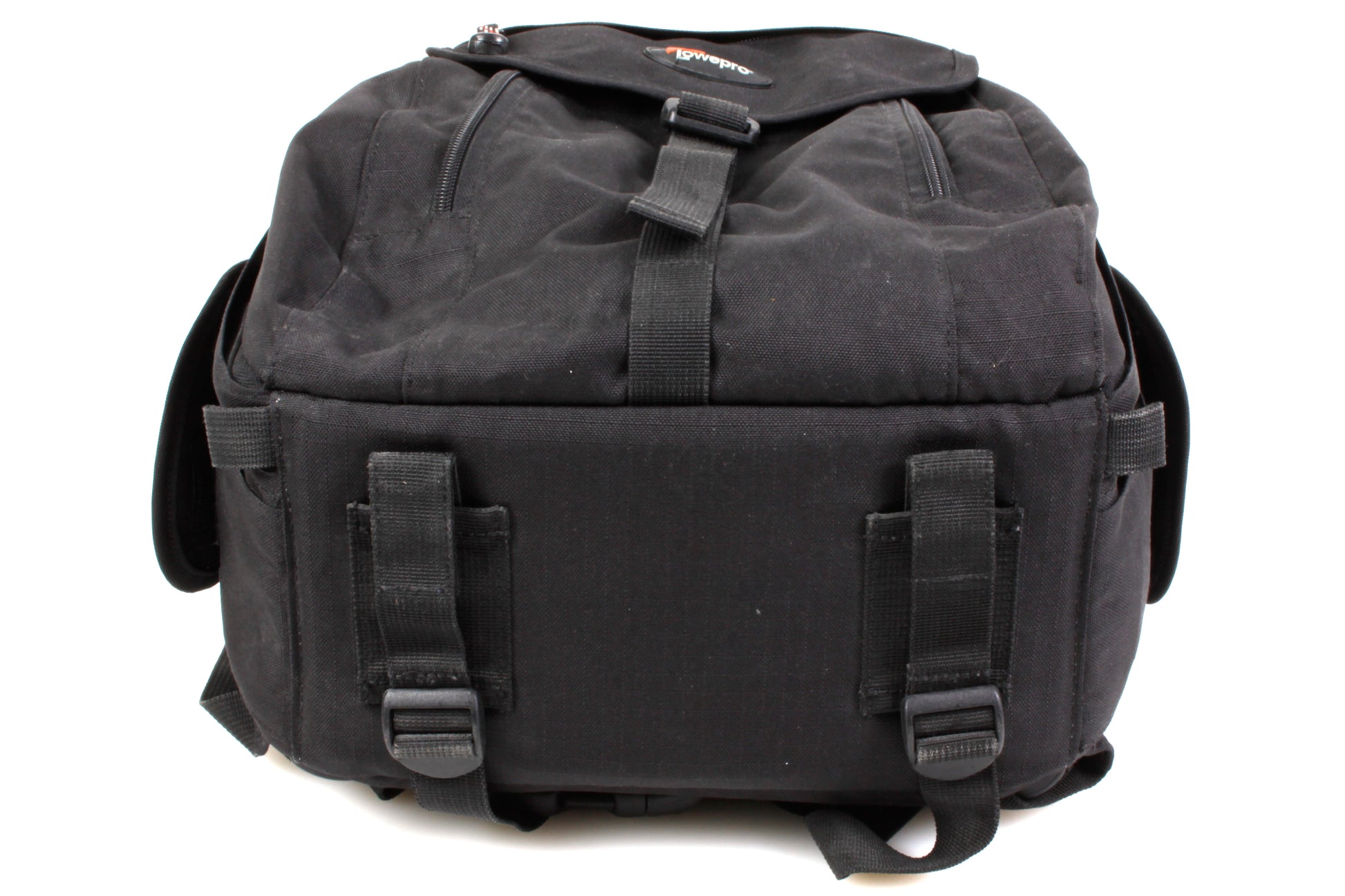 Lowepro Micro Trekker 200 black camera backpack. Overall measurements approximately 13 1/2 x 12 1/2 x 6 1/4 inches. Interior measurements approximately 11 3/4 x 10 1/2 x 4 1/2 inches. In very good vintage condition with some marks and general signs of use but no obvious major damage.