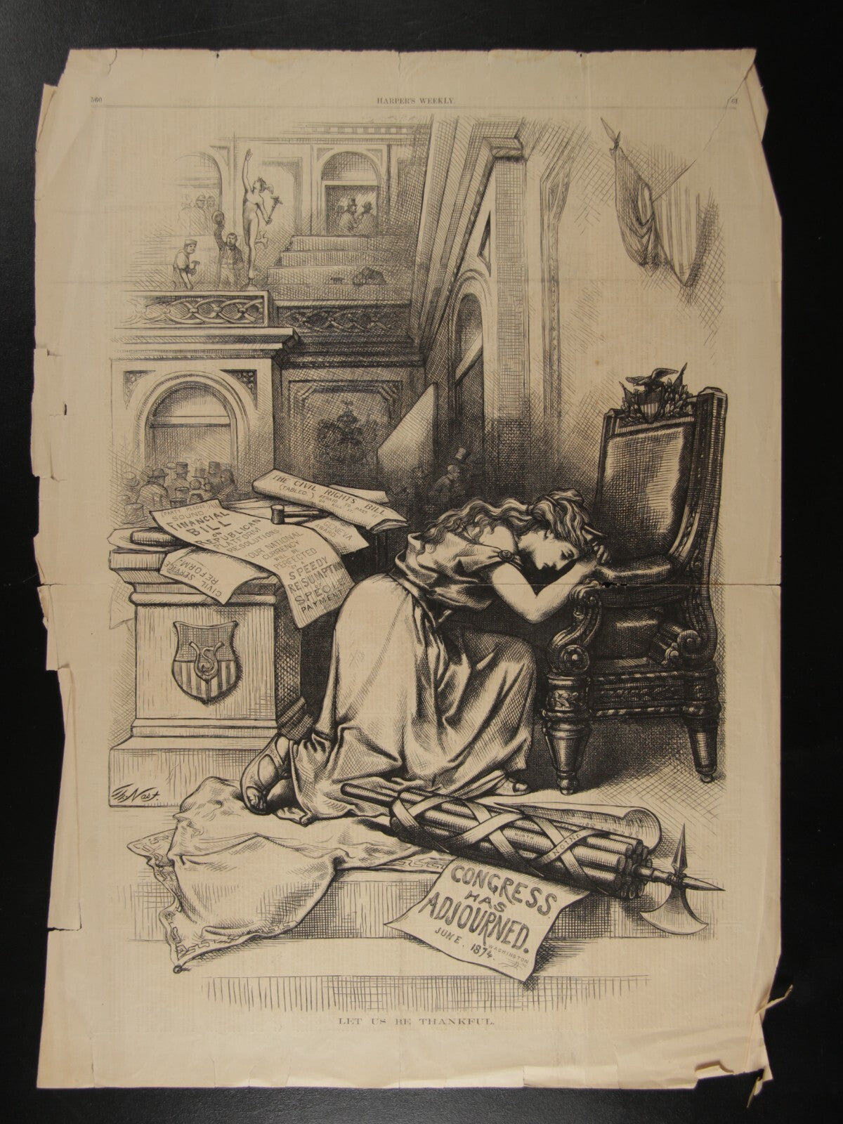 VINTAGE NEWSPRINT HARPERS WEEKLY CIVIL RIGHTS BILL TABLED JULY 4TH 1874 24X17"