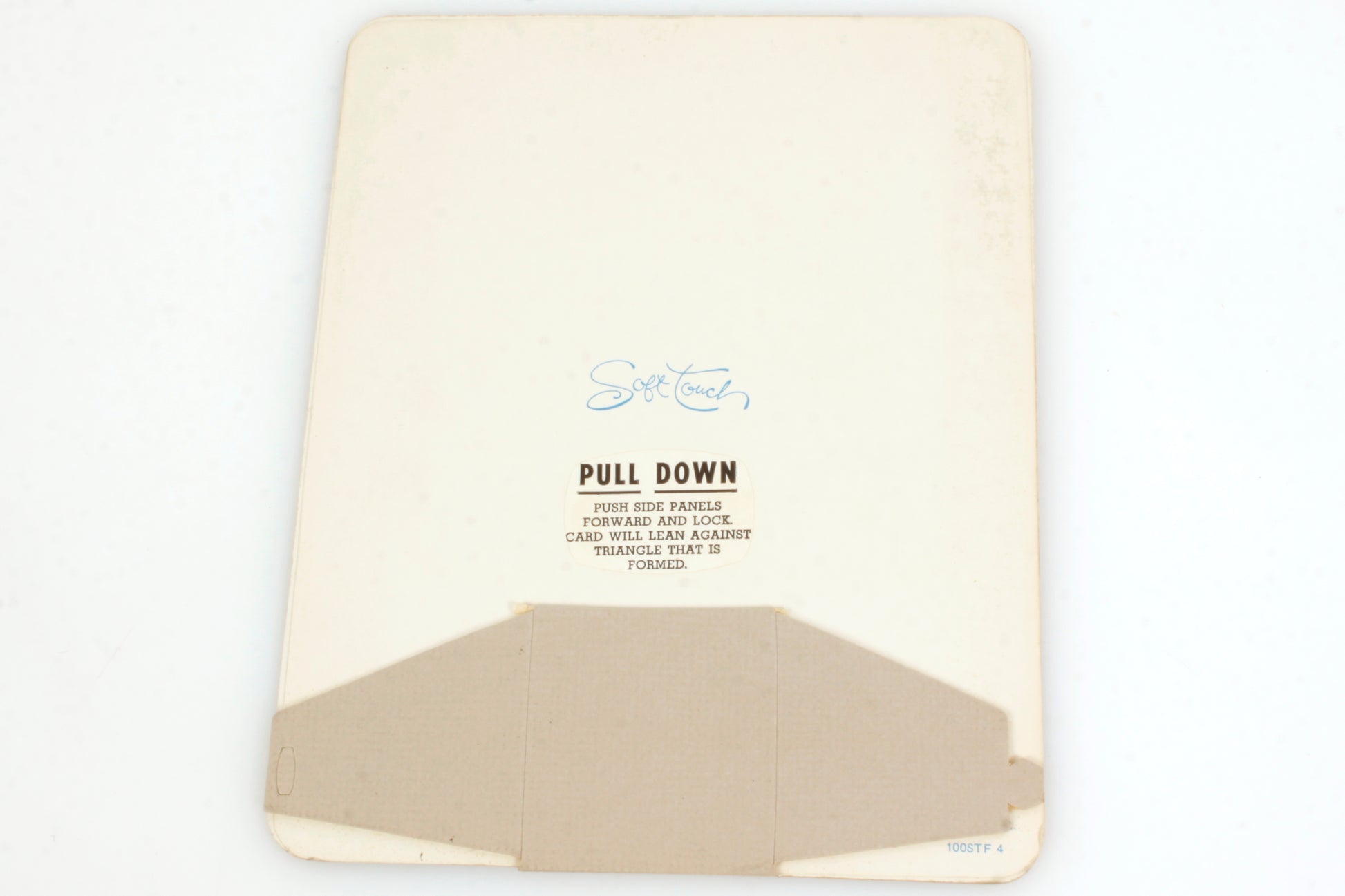 Lot of 14 cardboard frames featuring six different inspirational quotes. Each frame measures 8 x 10 inches with 5 13/16 x 7 1/4 inches window. The frames have a fold-out stand at the back. Also comes with approximately 25 envelopes. In good vintage condition with some light marks due to having been in storage.