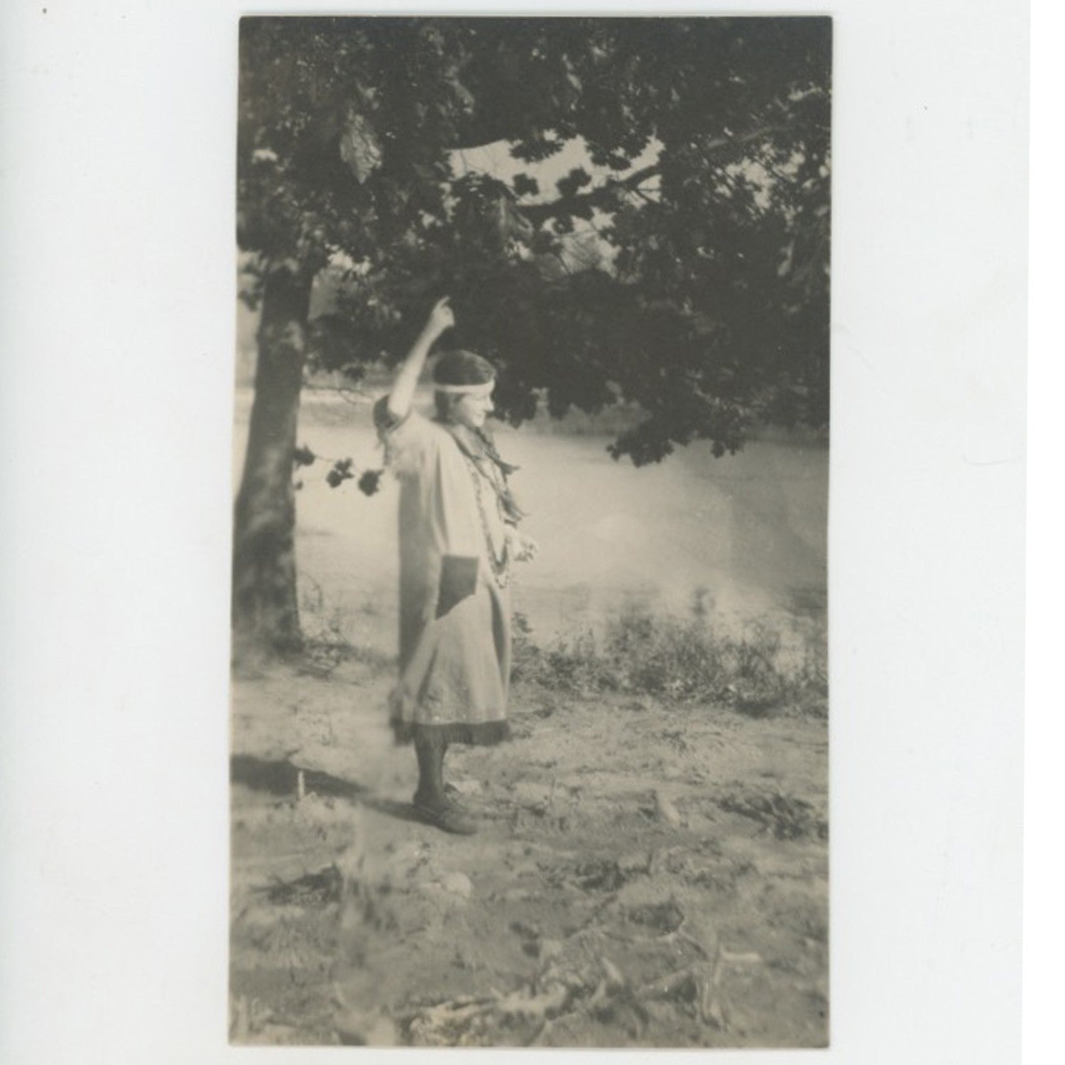 VINTAGE PHOTO - NATIVE AMERICAN WOMAN BY RIVER. BRAIDS, FRINGE DRESS & NECKLACE