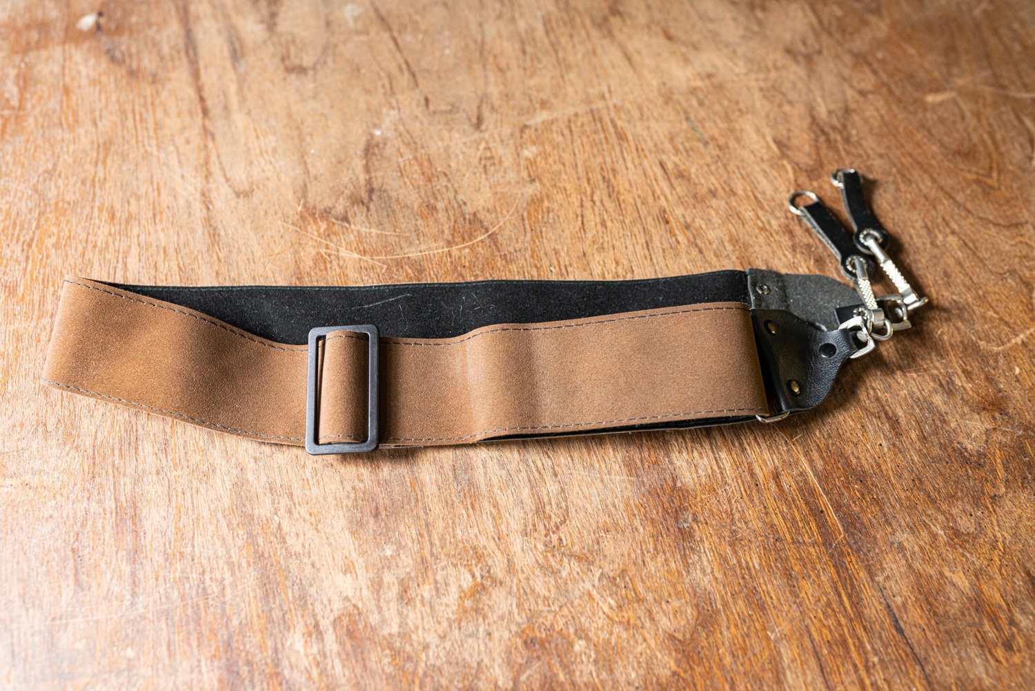 Vintage Pleather and Velvet Camera Strap w/ Strap Protectors. Black and Brown. Approximately 2" wide and 47" in total length.