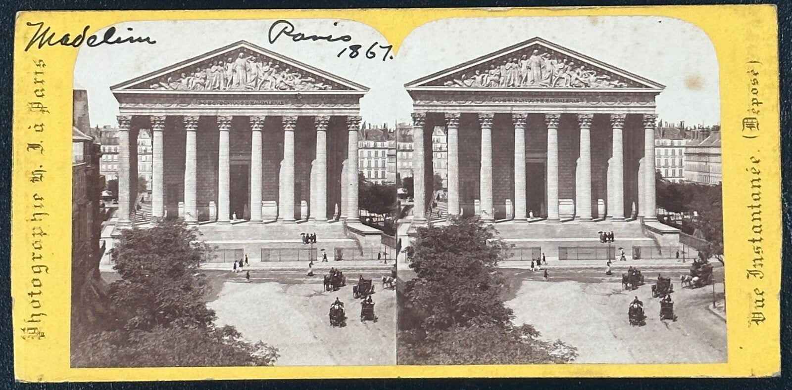 Vintage Stereoview Card: ���Eglise De La Madeleine Paris 1867 ��� 3.5x7in