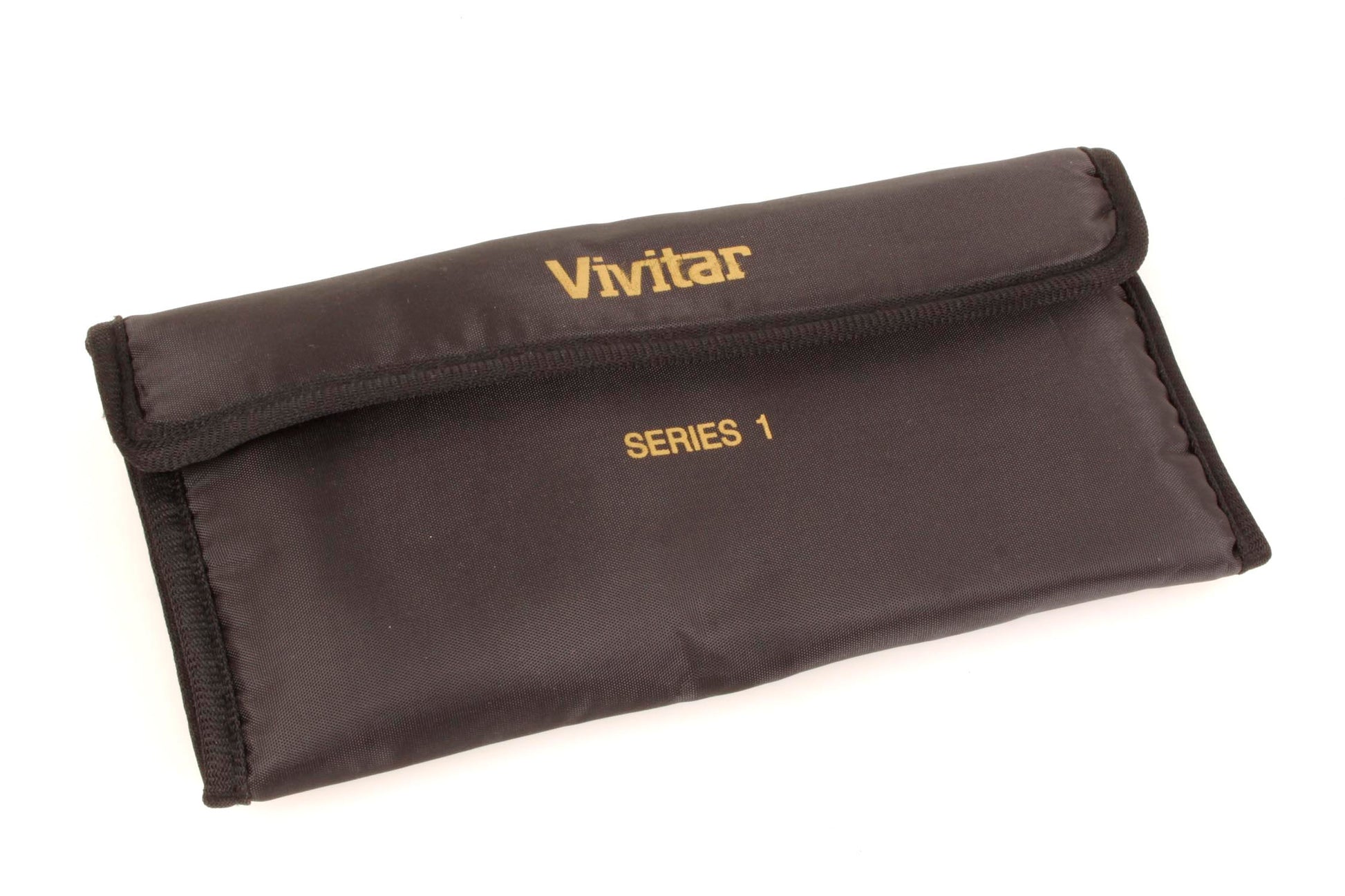 Vivitar Series 1 Velcro case with 4 spaces for filters. Includes three filters (UV, ND8, CPL) In good condition.